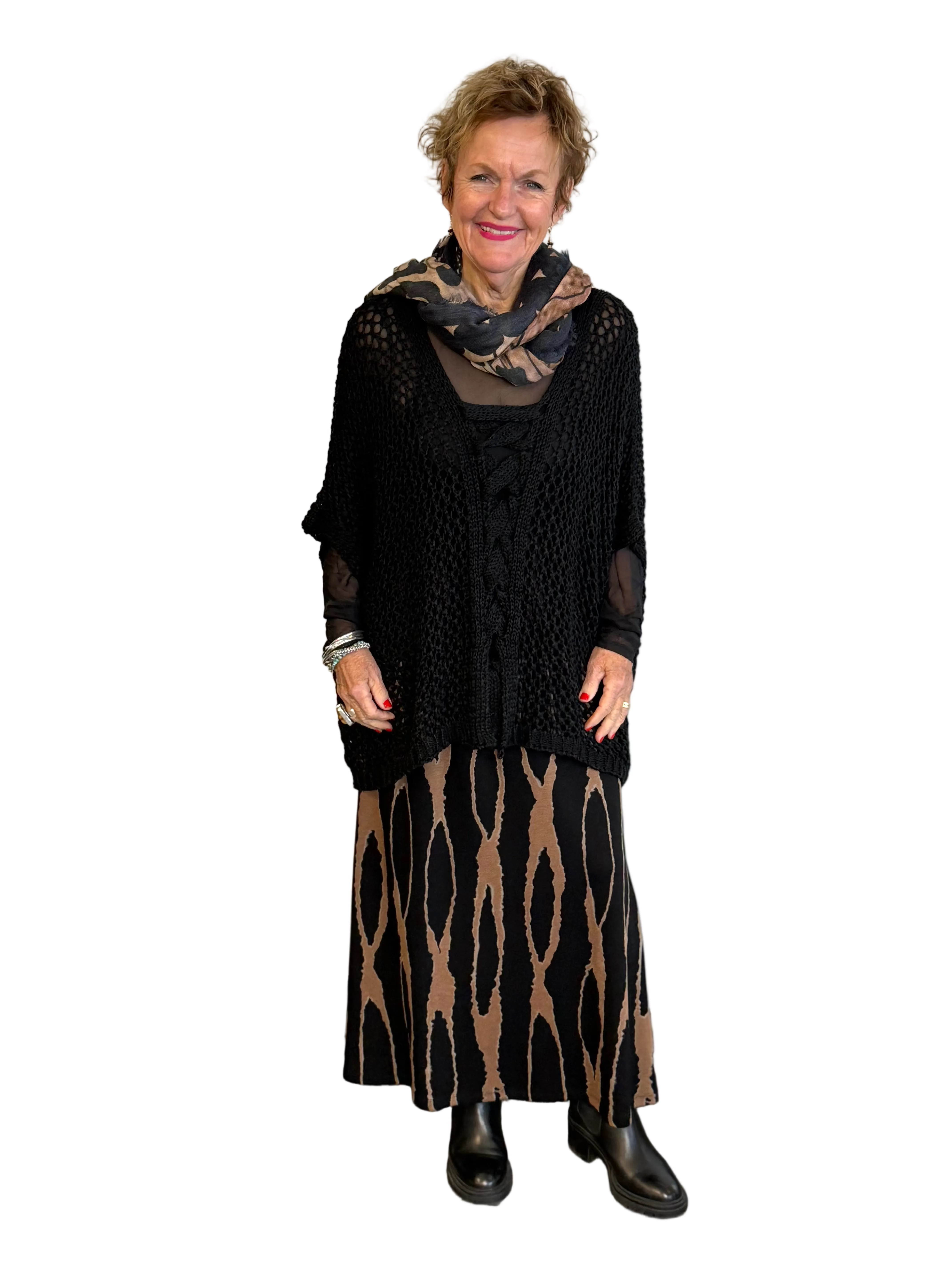 Richly textured in midweight jacquard knit, this maxi pencil skirt delivers structured comfort with refined ease. Its straight silhouette skims the figure for a streamlined profile, while the elastic waistband keeps the fit effortless. The versatile Wood hue makes it a season-spanning foundation piece, ideal for pairing with tonal knits or vibrant layers.