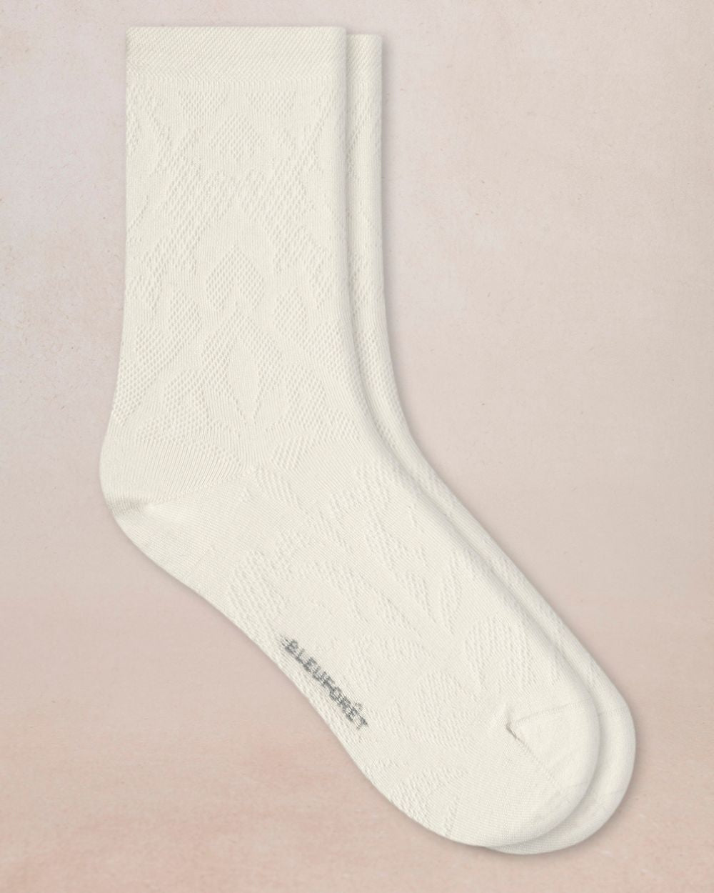 A luxurious material, silk captivates with its natural lustre and incomparable softness. Knitted using Bleuforêt expertise, these socks feature a subtle transparent effect through their refined and delicately feminine lace details.