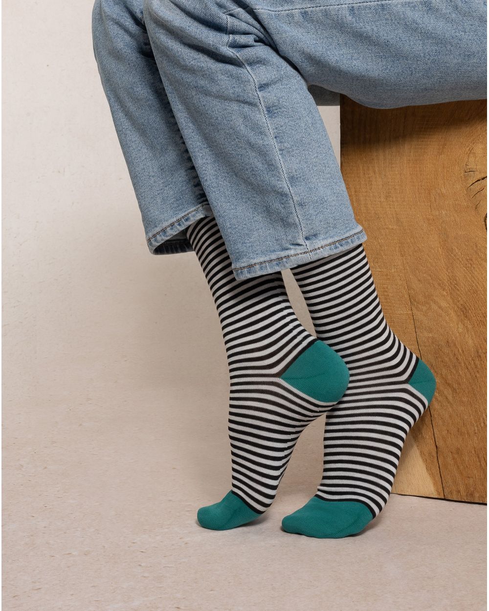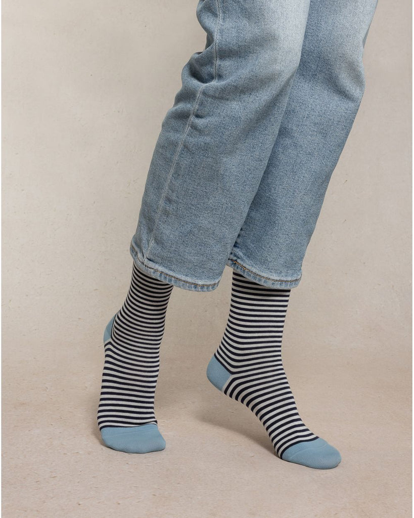 Bleuforêt has created its own stripe design, a must-have pattern in every woman's wardrobe. Knitted from high-quality cotton, these patterned socks are a real cocoon of comfort.Slim, soft and trendy, they'll be your companion all season long.