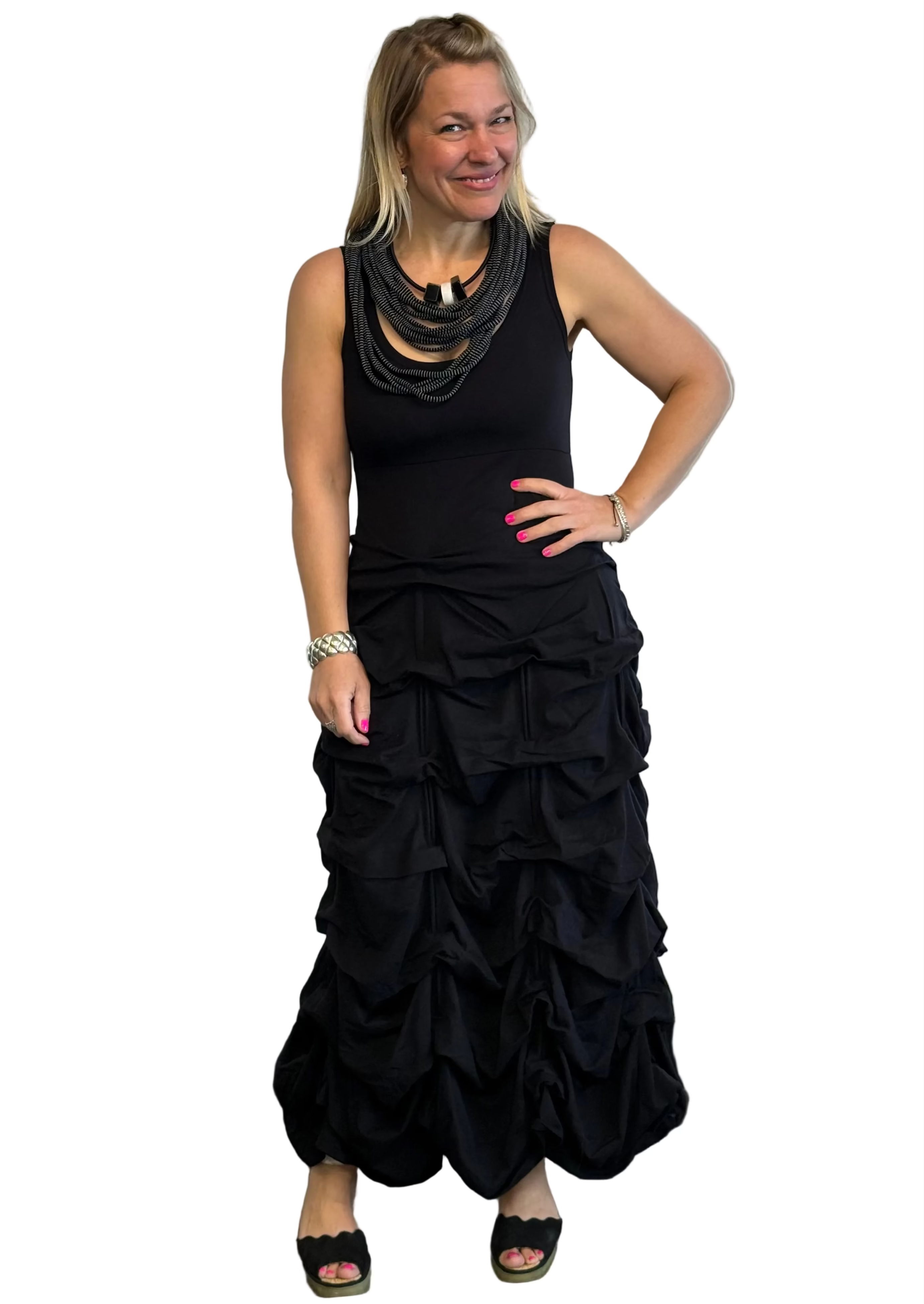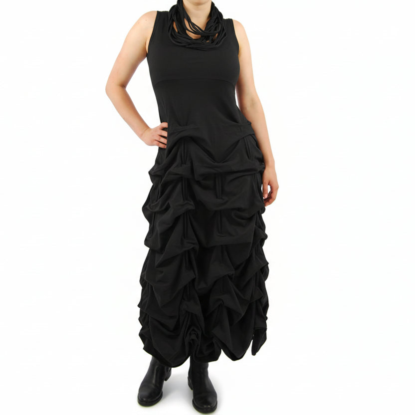 Sleeveless dress in soft, stretchy cotton. This dress features pleats sewn into the hem for an elegant look.