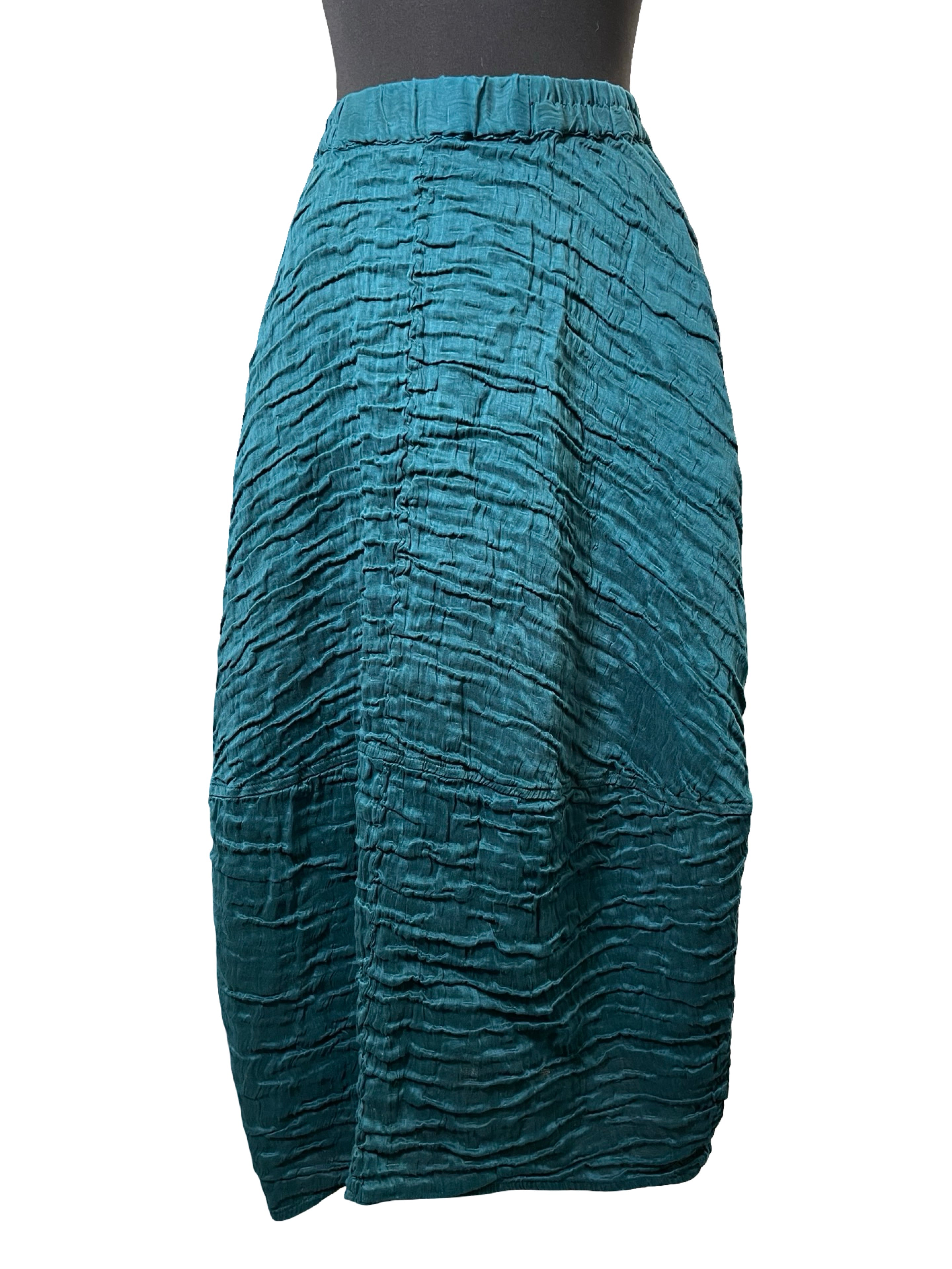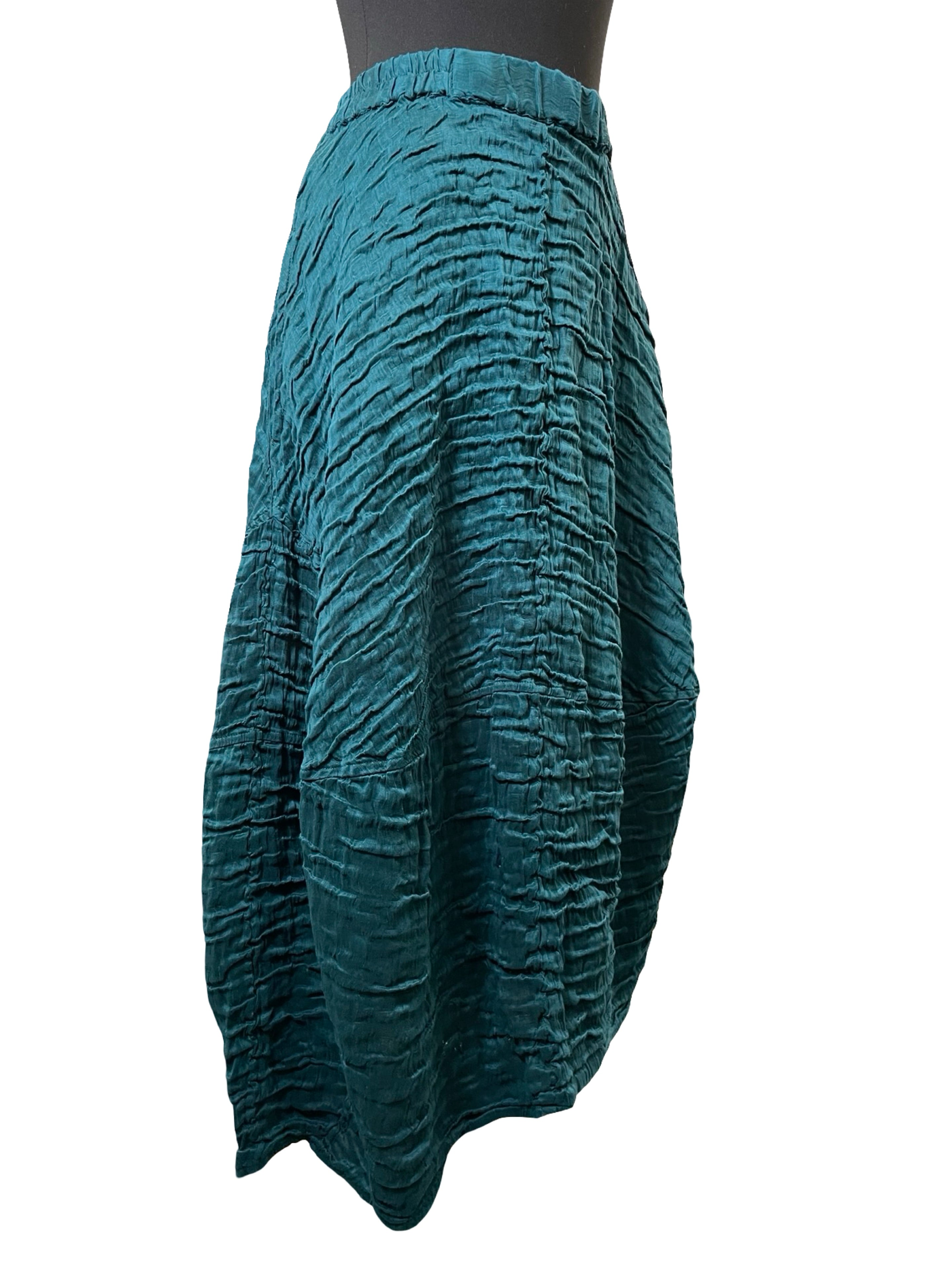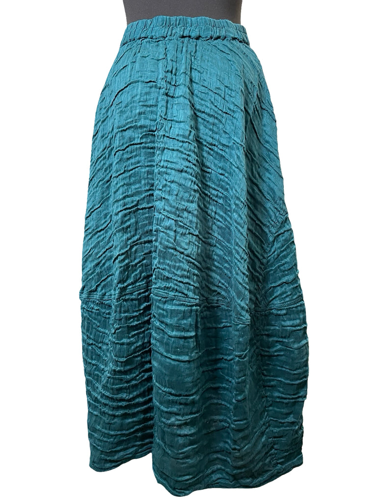 Sculptural yet weightless, this crinkled silk skirt features a graceful balloon silhouette in a striking new shade. The soft texture and elasticated waist ensure effortless comfort, while the structured drape adds an elevated touch to your everyday style. A versatile piece for layering through early autumn and into winter.