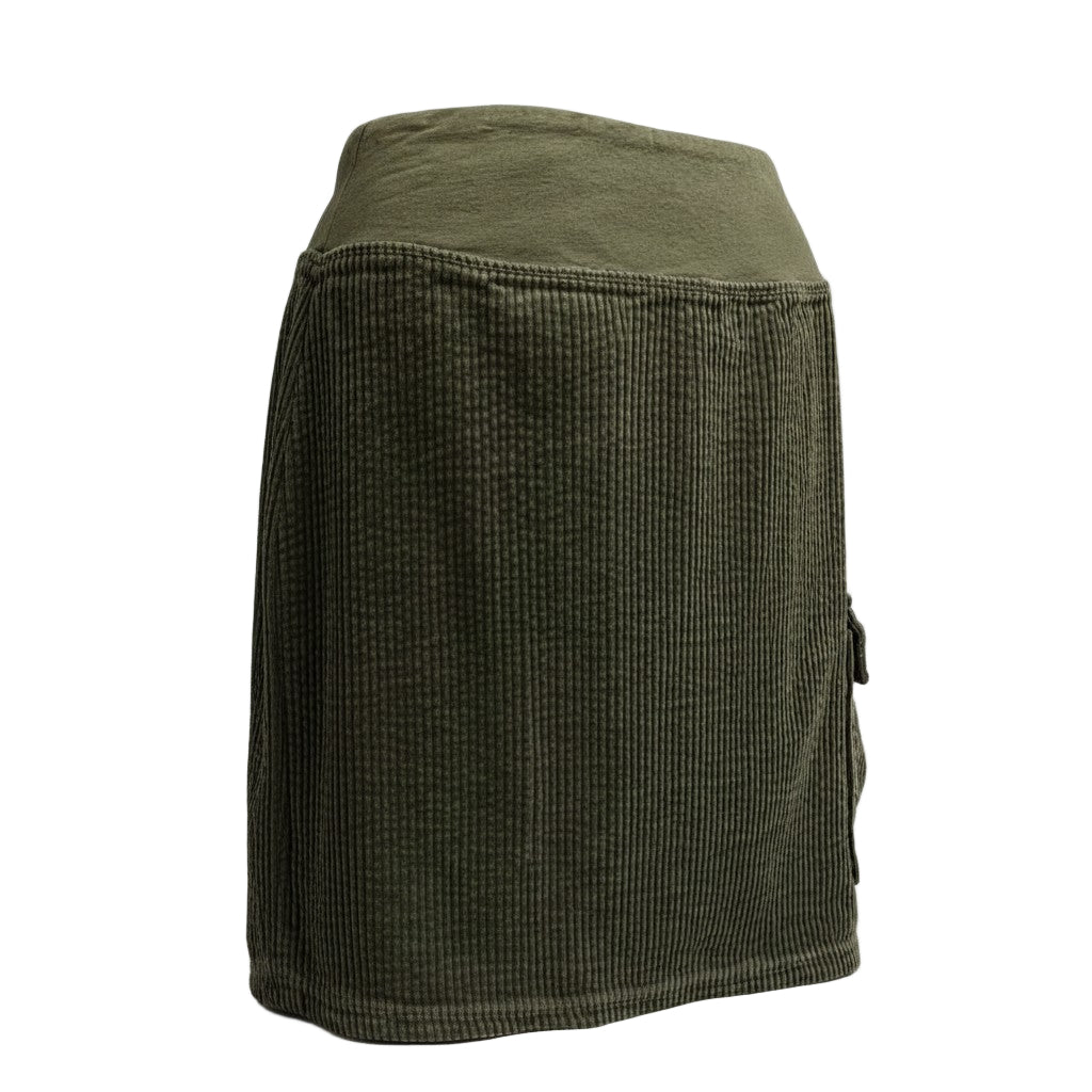 Beautifully simple corduroy skirt, featuring a jersey knit waistband and a style pocket on the side.