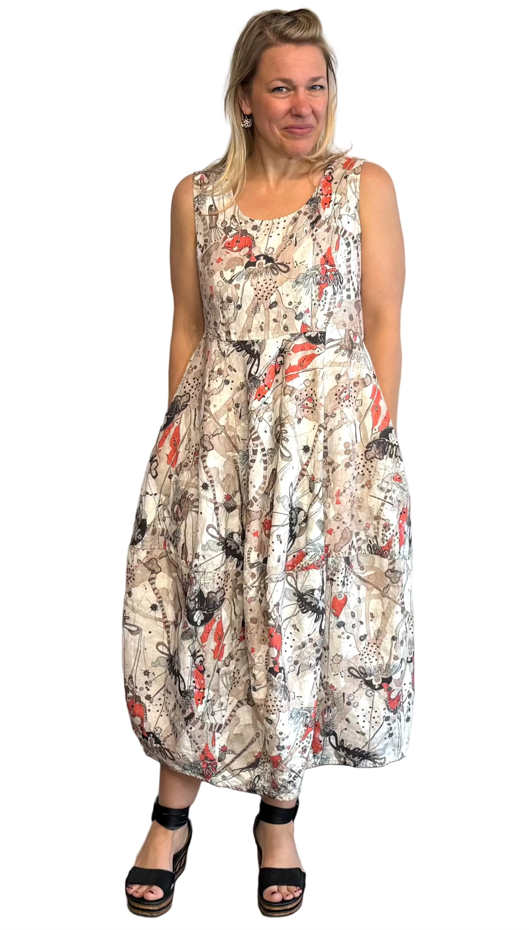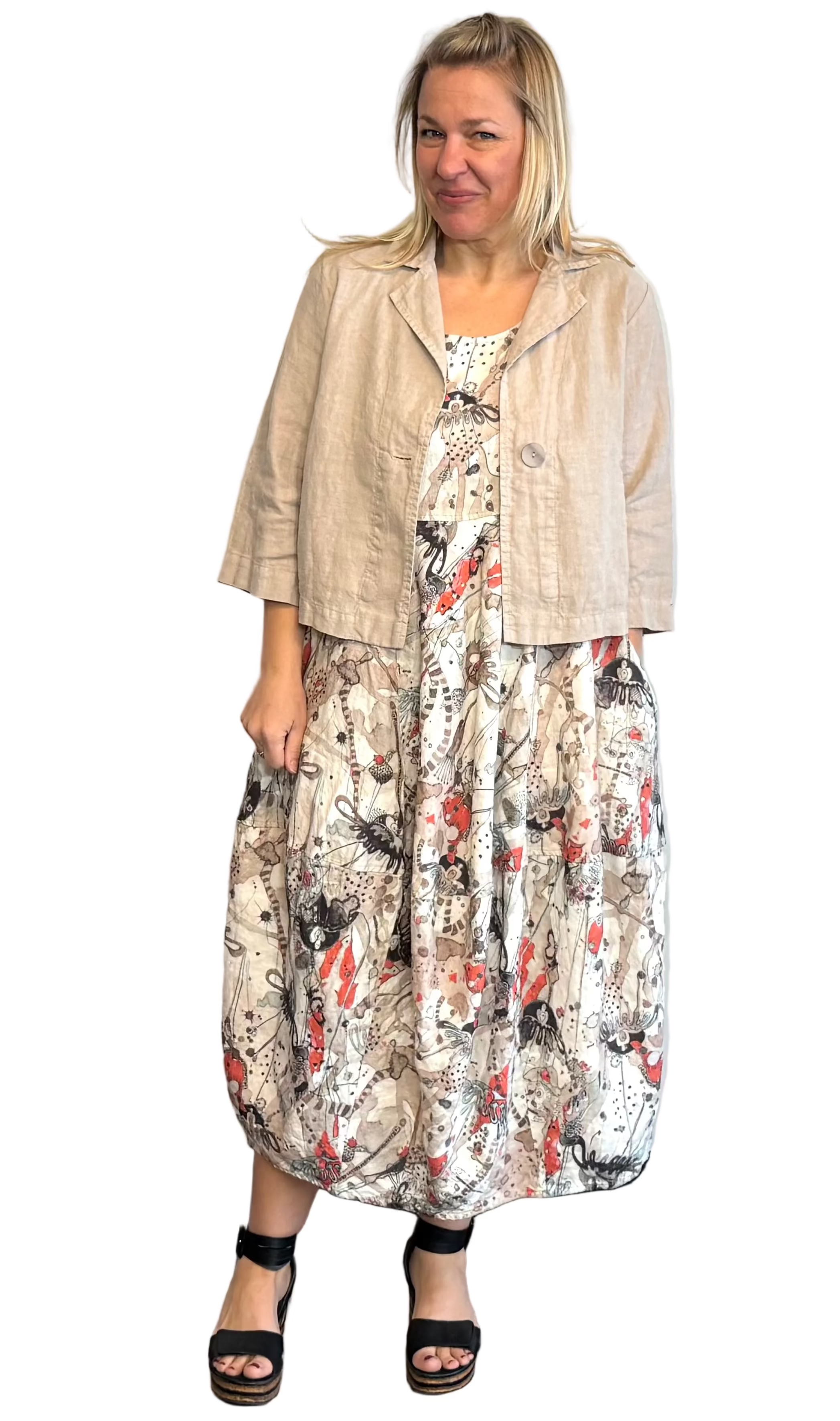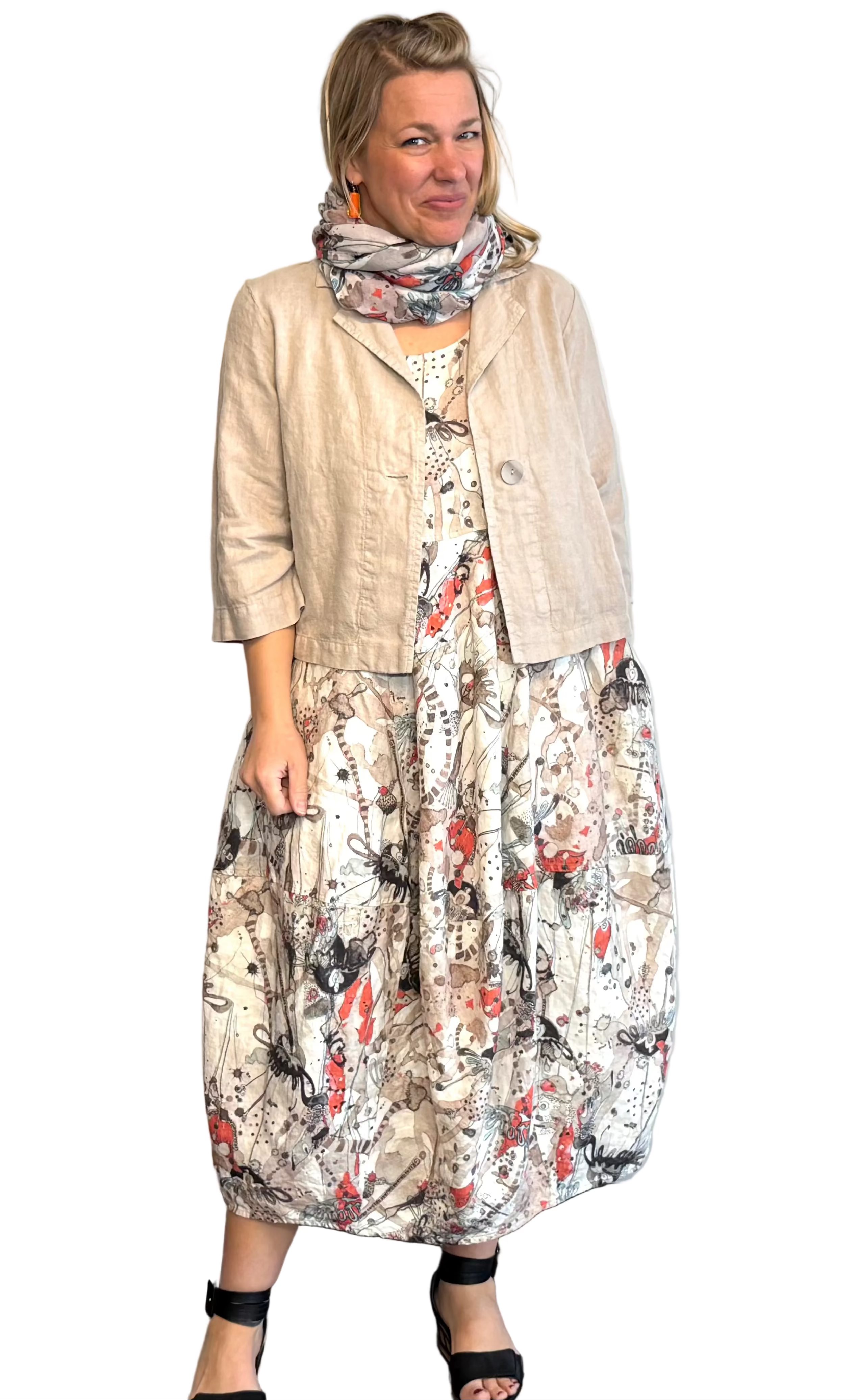 Grizas Sea Life Linen Balloon Dress