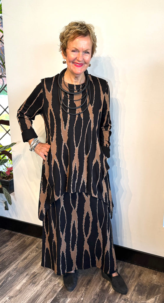 Richly textured in midweight jacquard knit, this maxi pencil skirt delivers structured comfort with refined ease. Its straight silhouette skims the figure for a streamlined profile, while the elastic waistband keeps the fit effortless. The versatile Wood hue makes it a season-spanning foundation piece, ideal for pairing with tonal knits or vibrant layers.