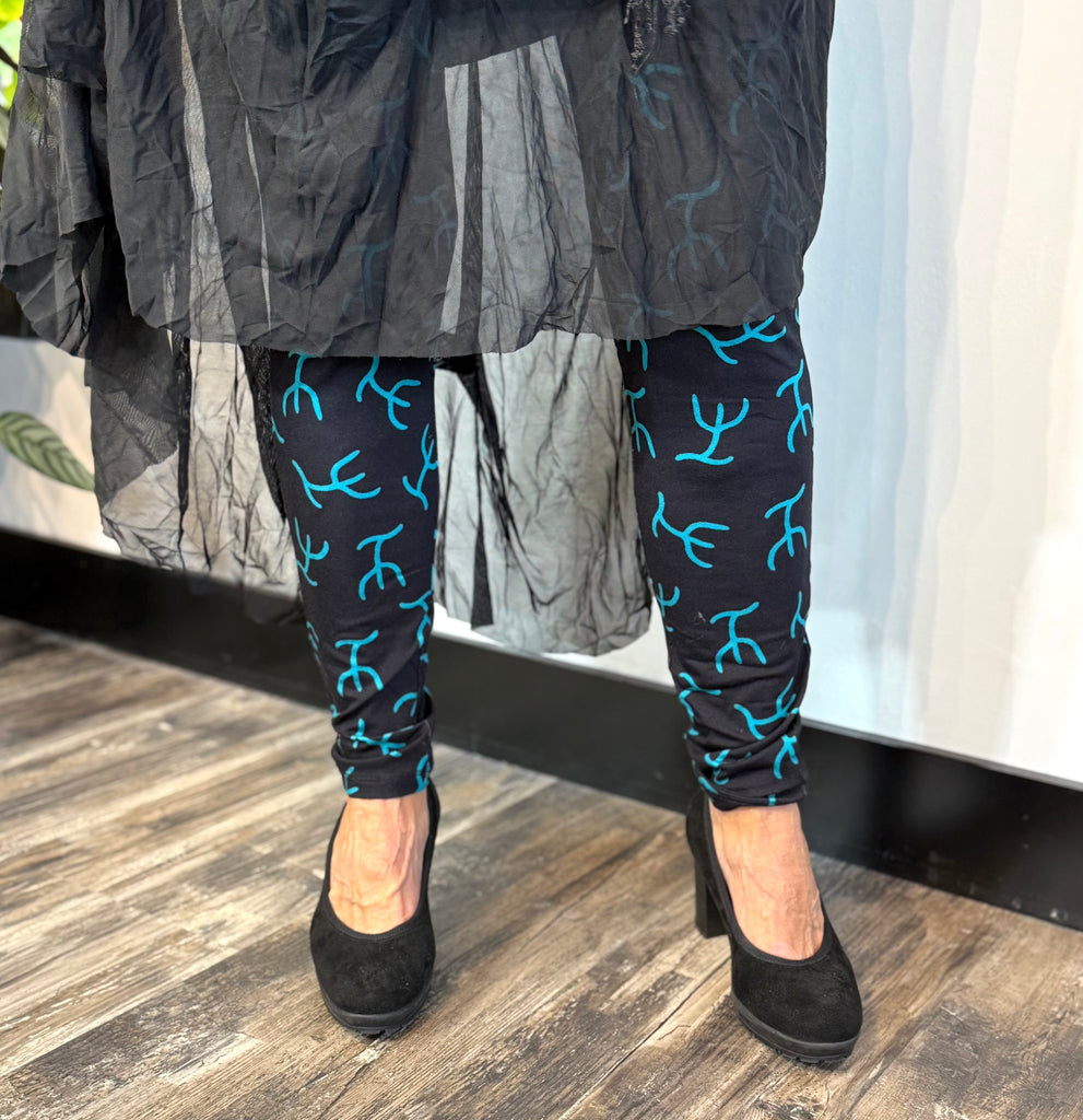 Cute leggings matching the Poseidon topper, featuring an elastic waistband and soft cotton fabric.