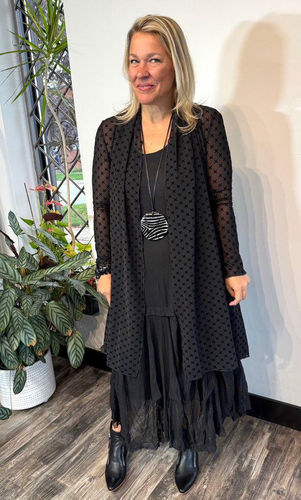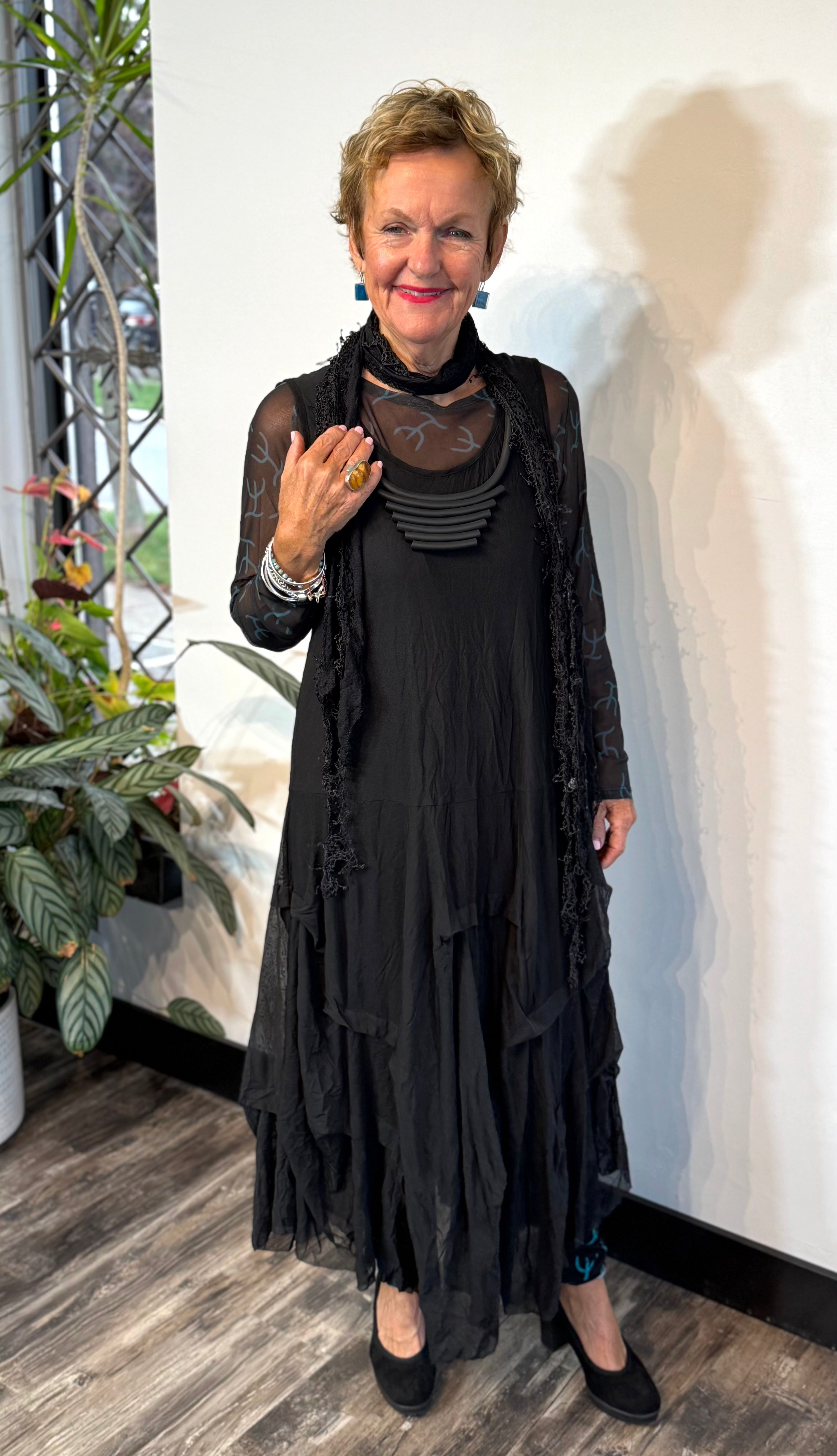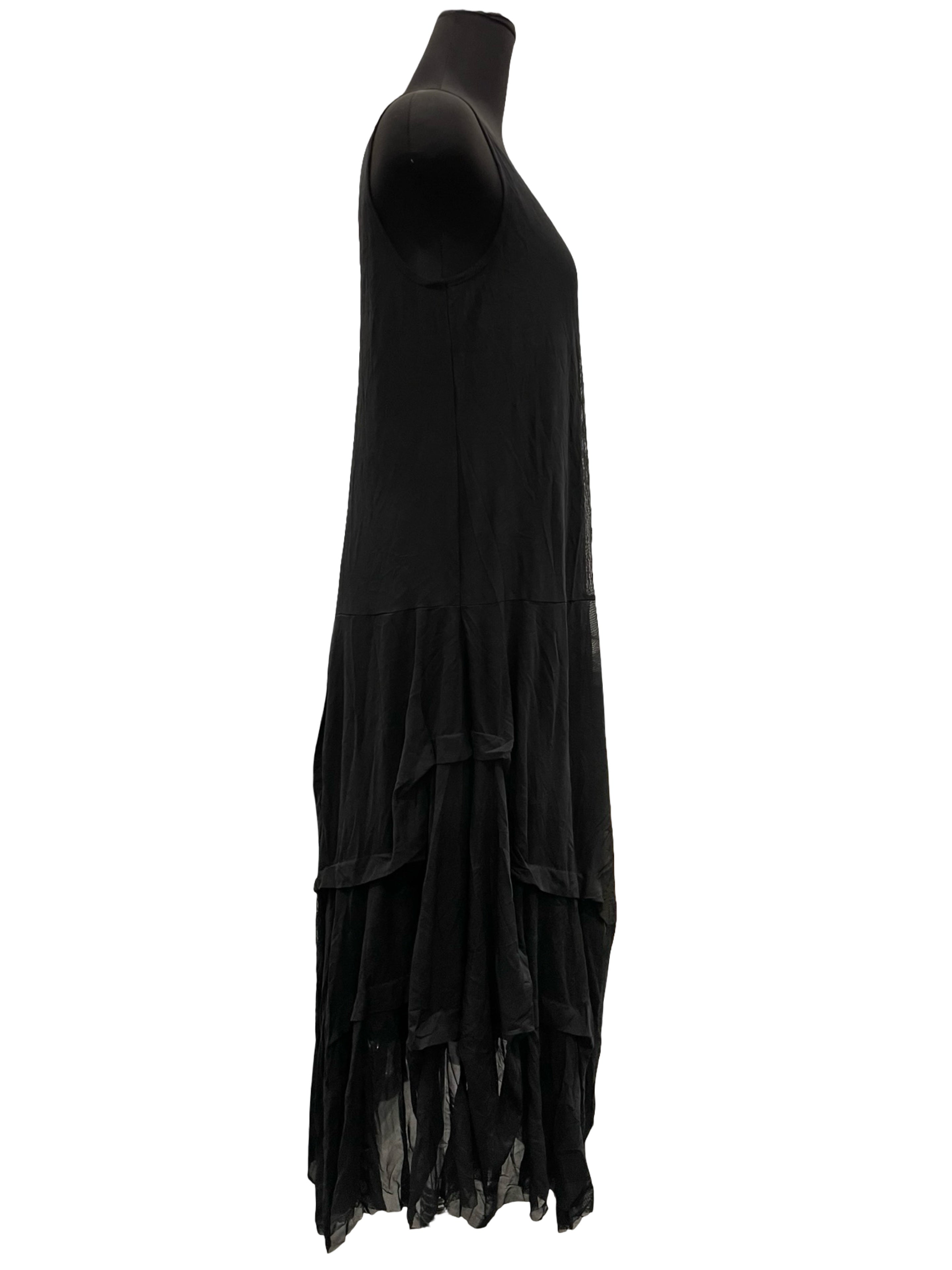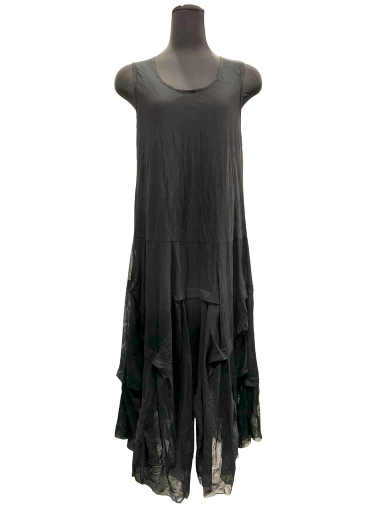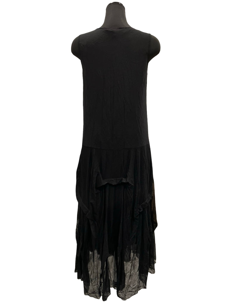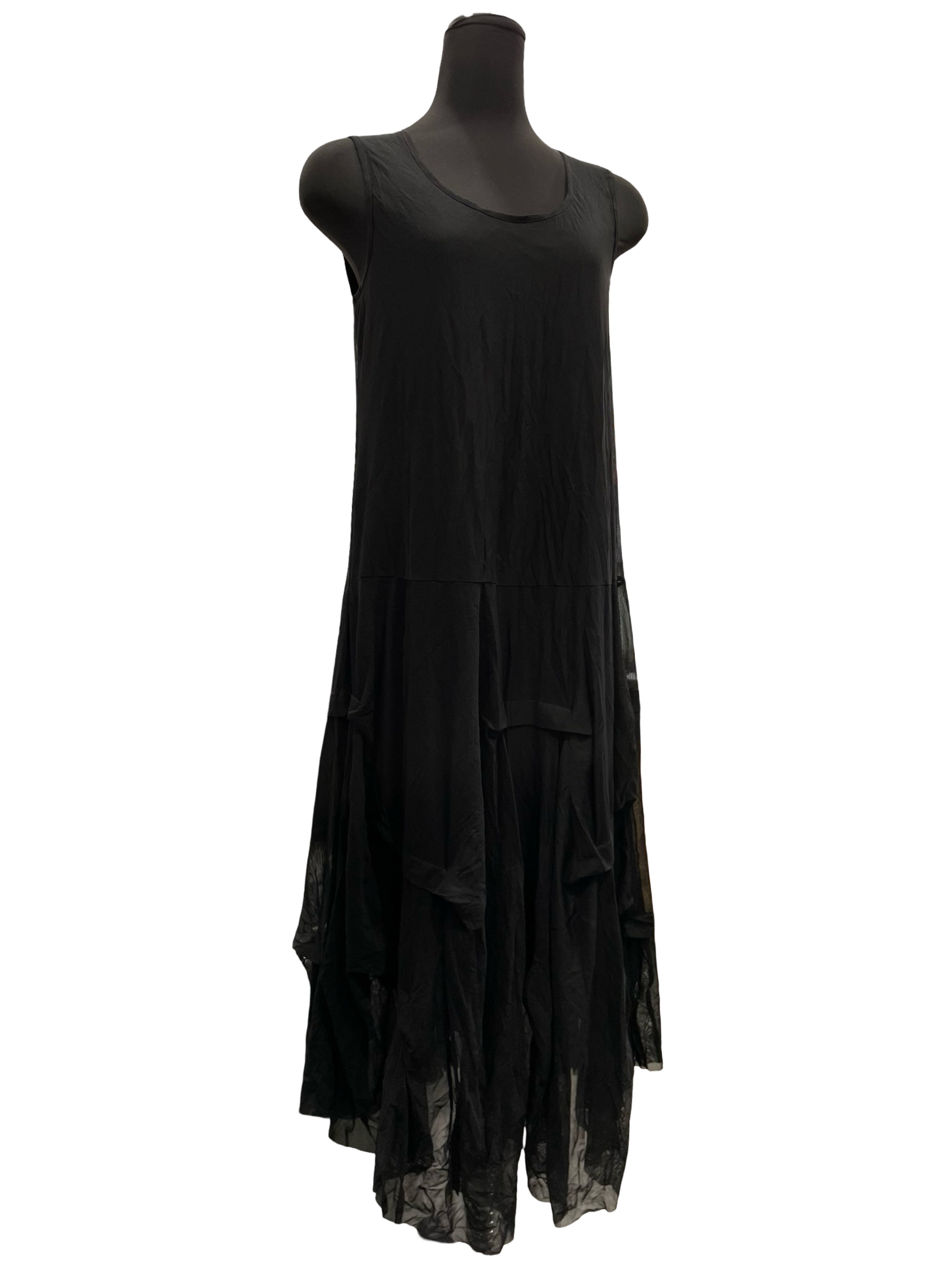 Soft cascading dress with beautiful detailing on the bottom. Double layer sleeveless dress, perfect to pair up with a layer top under.