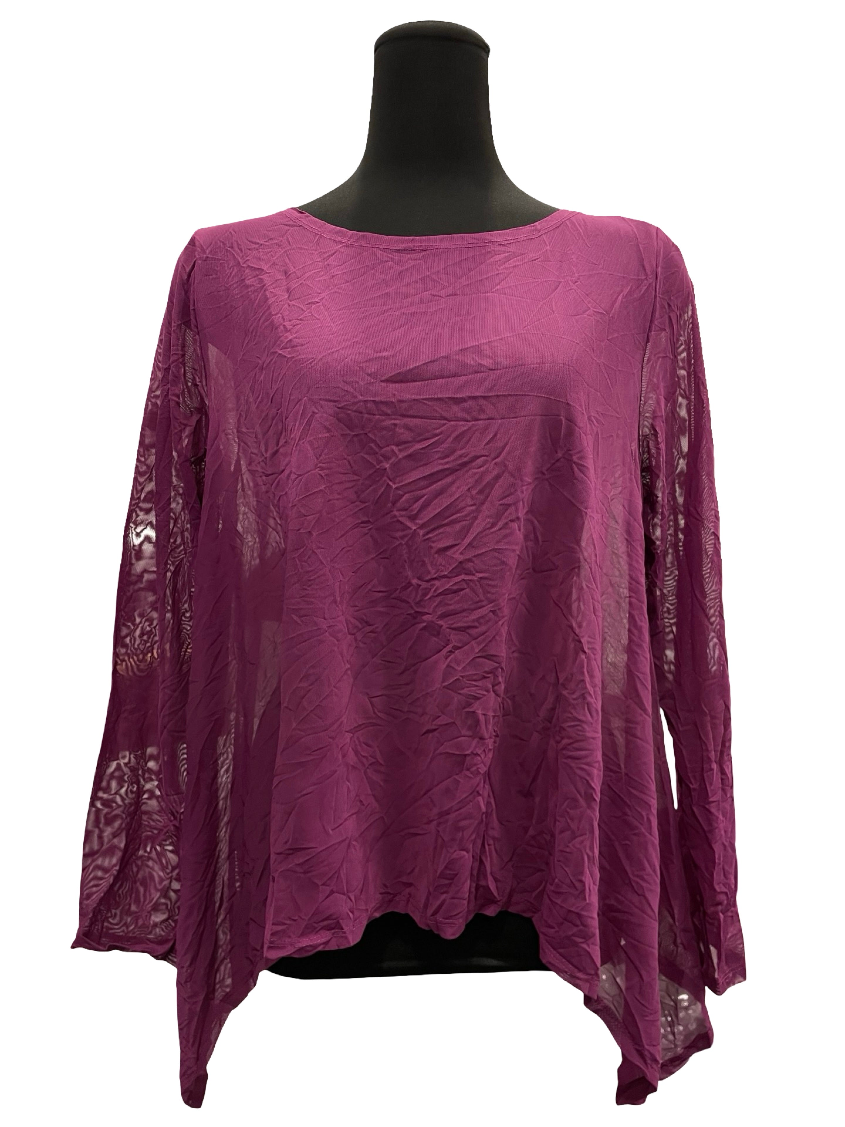 Stunning mesh topper available in a new colour: Violet! Wonderful to throw over top of a dress, or a neutral top underneath to let this topper shine!