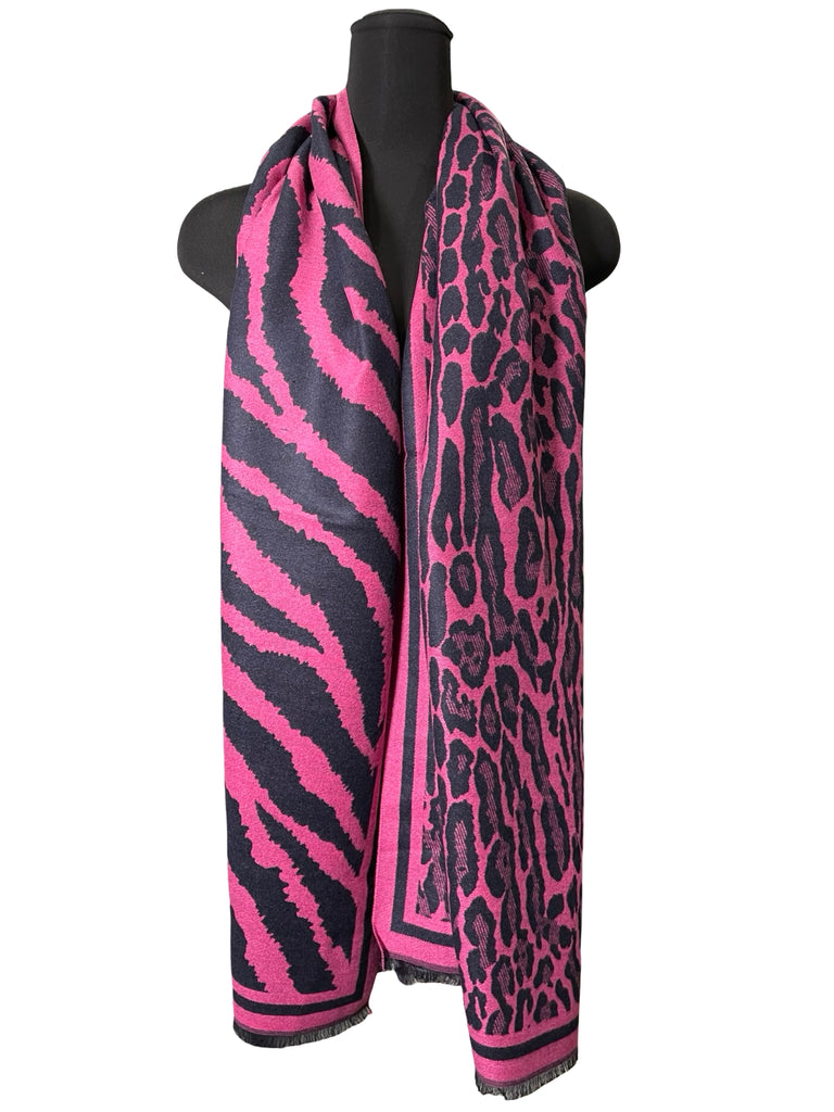 Super soft unique animal print scarf in a beautiful Fuchsia and classic Black & White