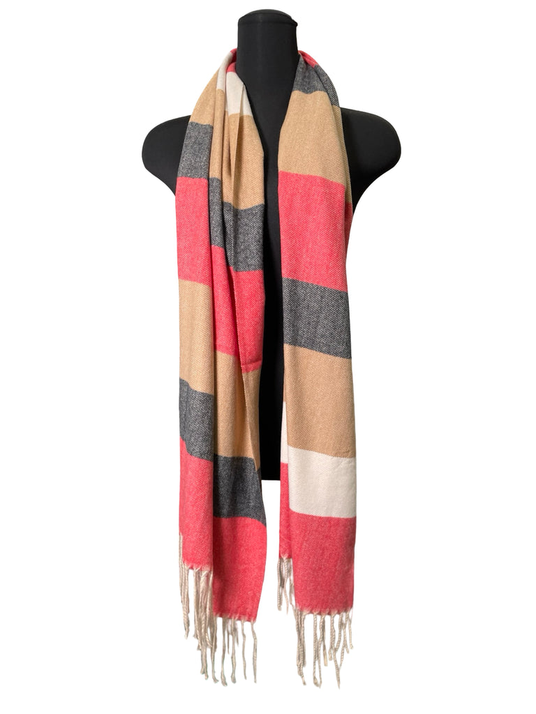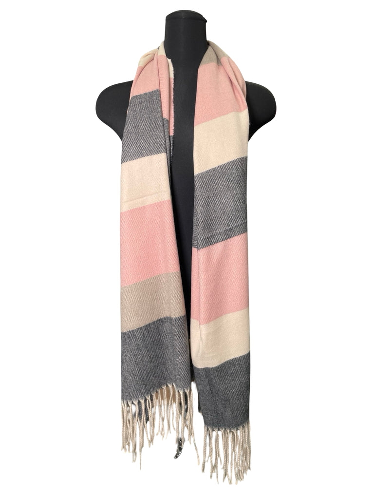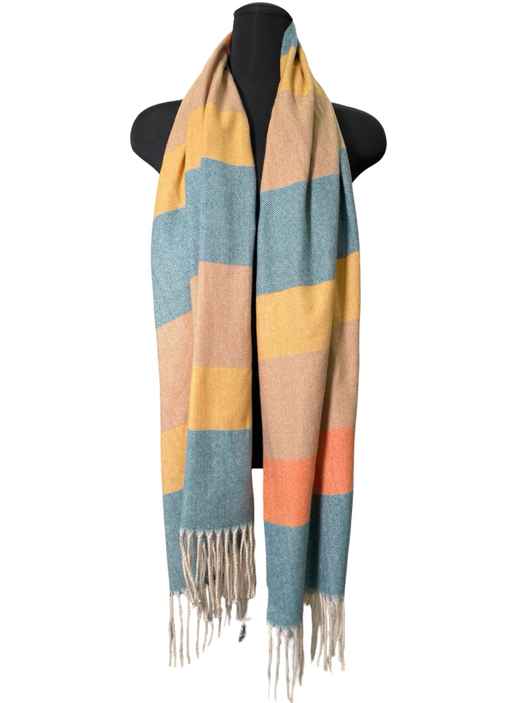 Super soft long scarves in these cool colour combos. Poly Blend.