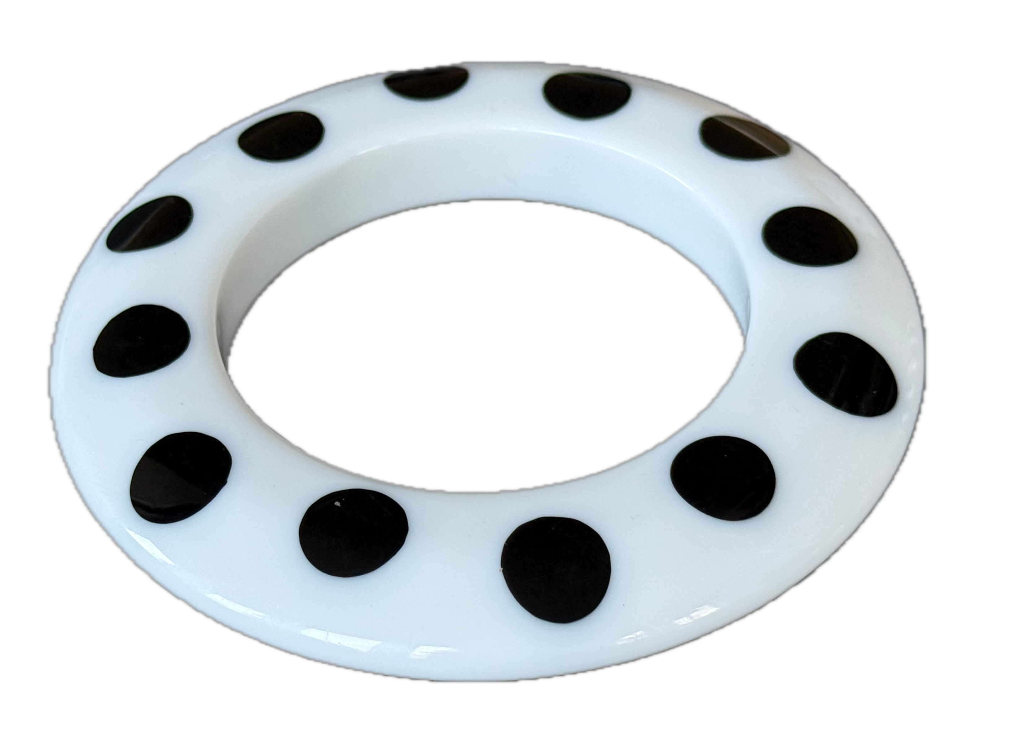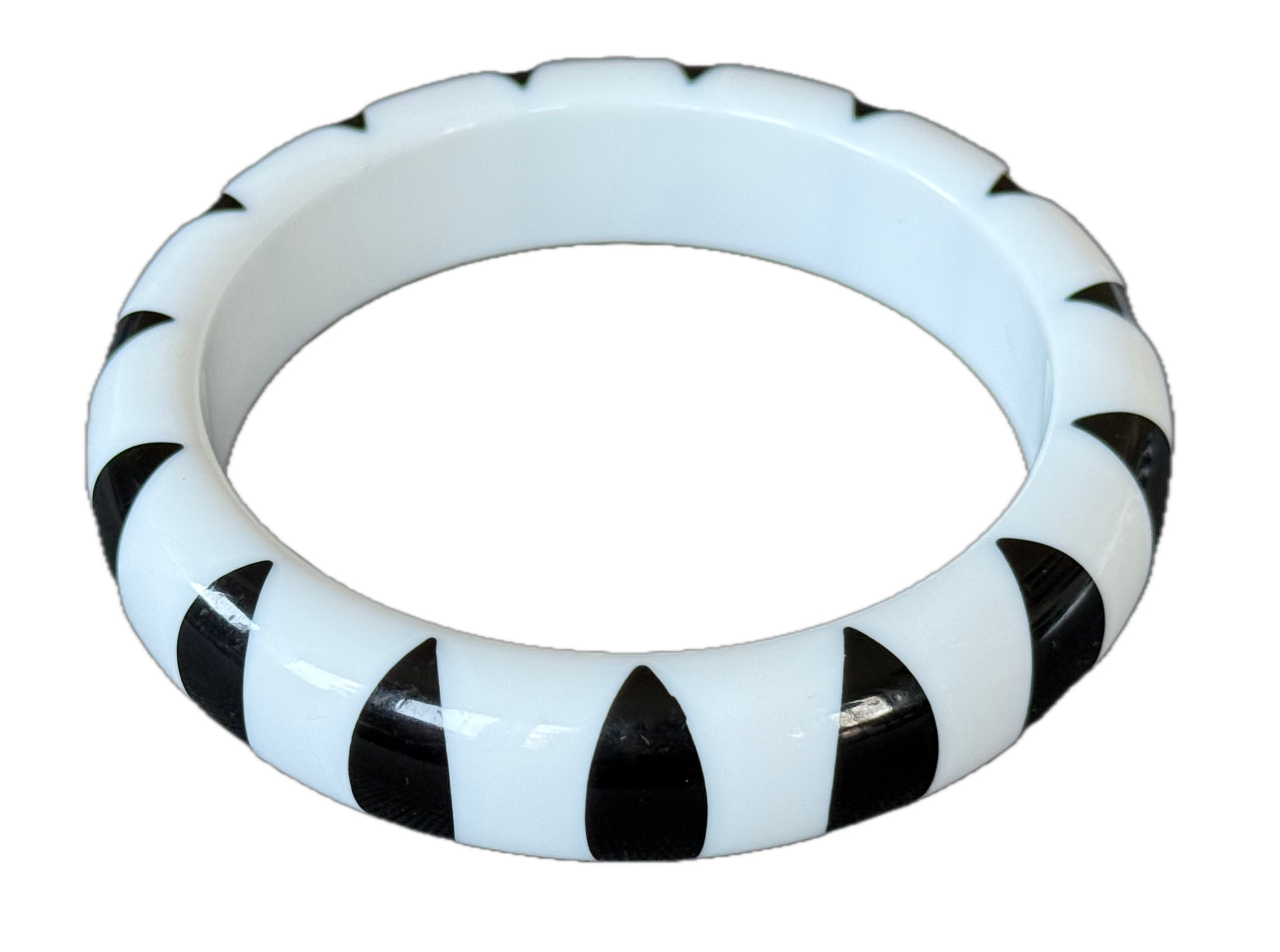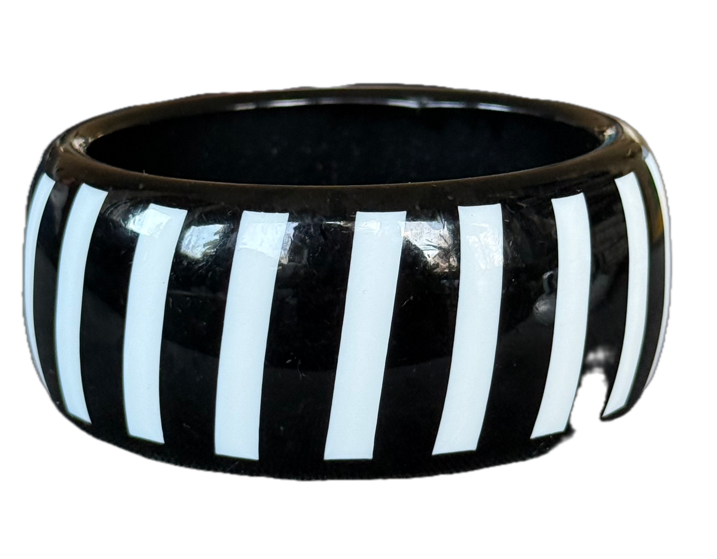 Thick resin bracelets in three classic designs. L&B Loves their stripes and dots. No better combo than black & white