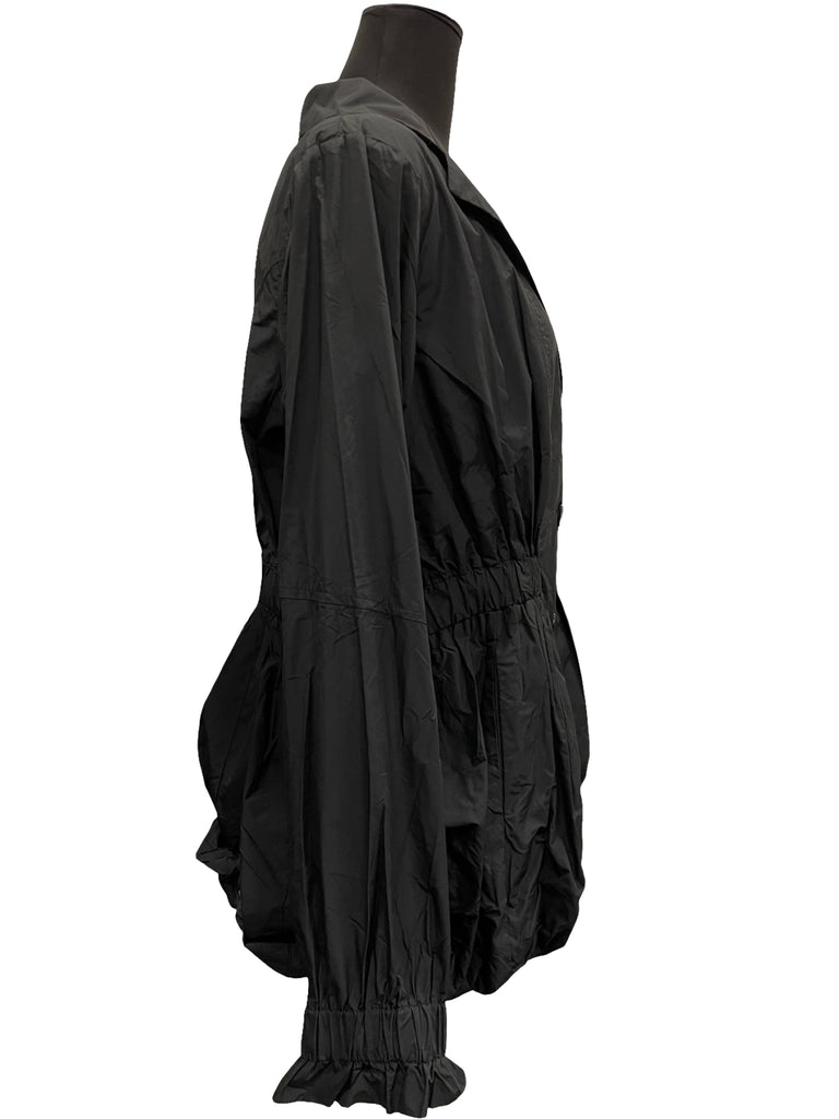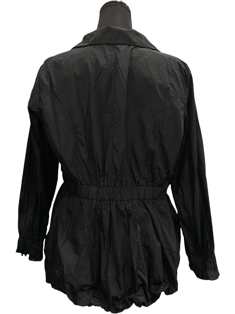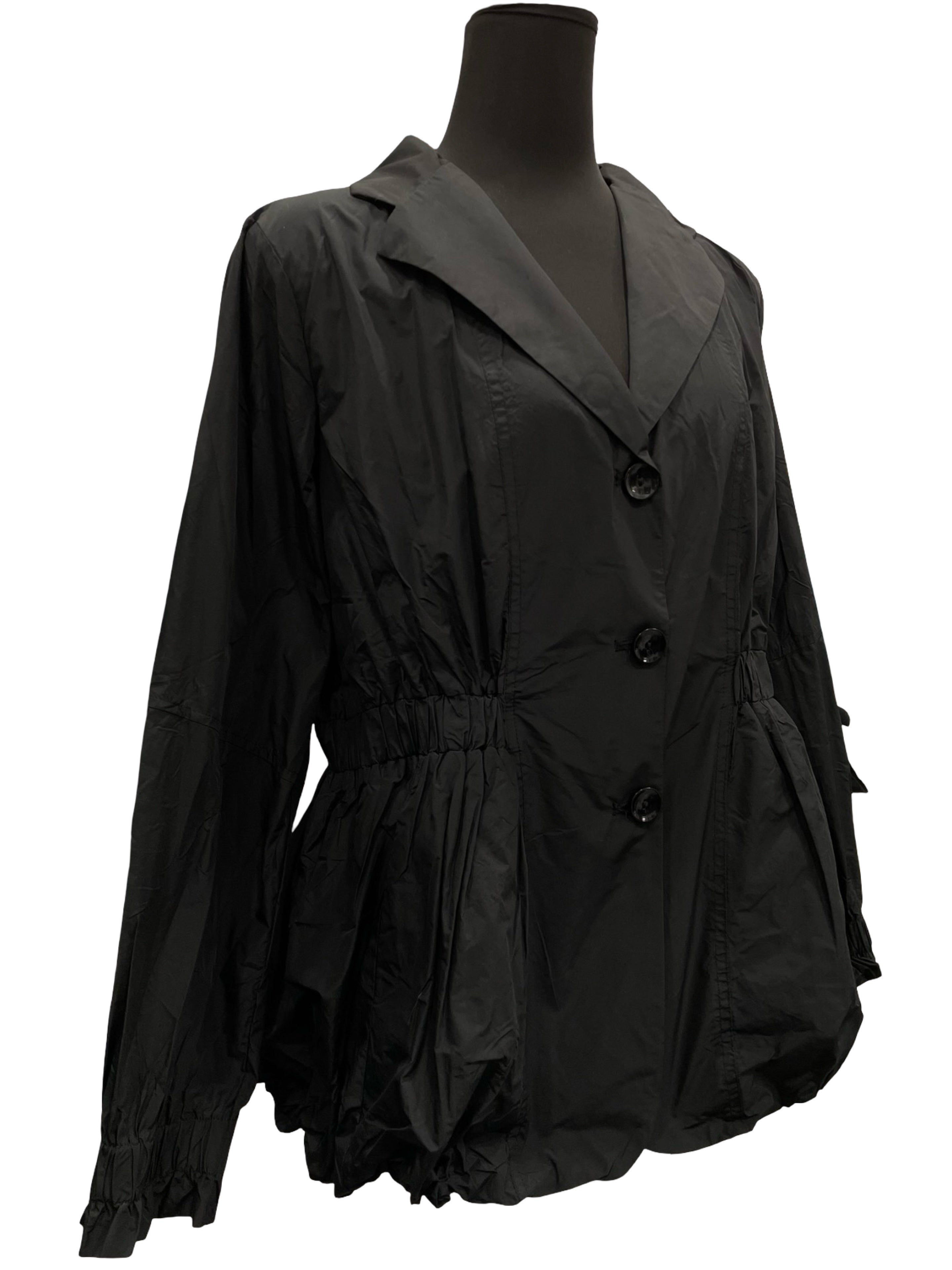 Flattering lightweight taffeta jacket with a bubble hem and pockets.