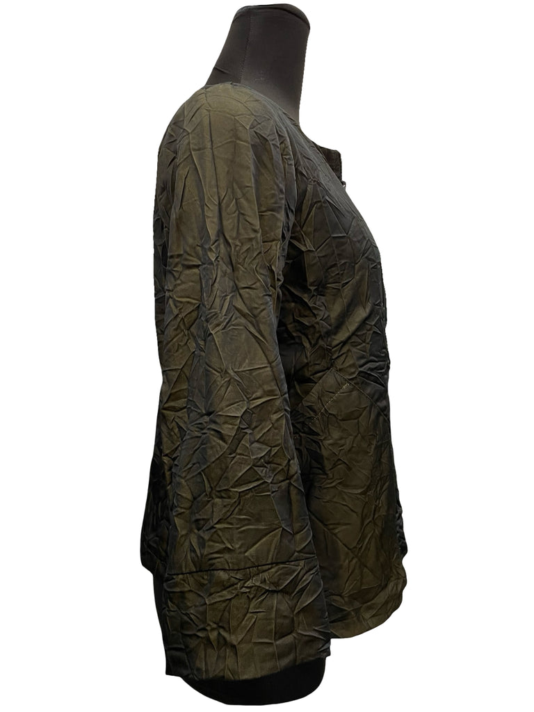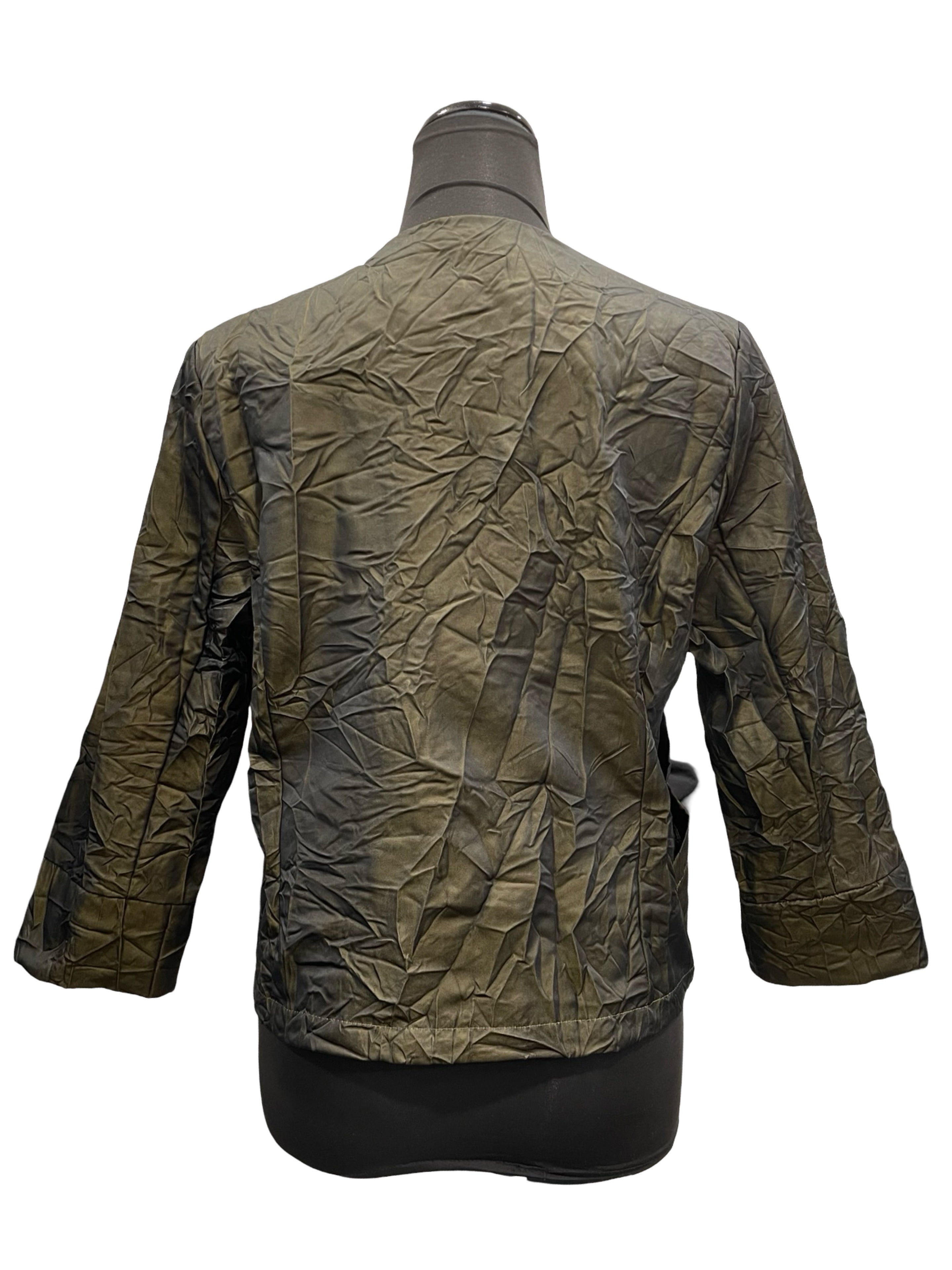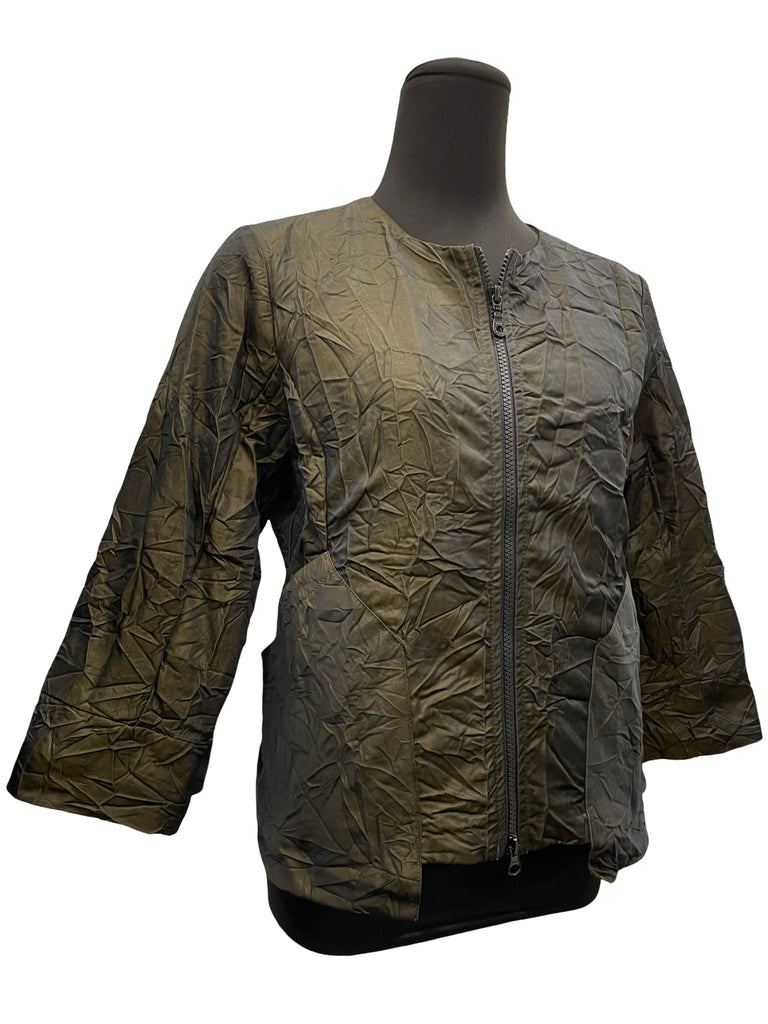 Soft taffeta jacket featuring a beautiful colour, zipper, 3/4 sleeves and pockets.