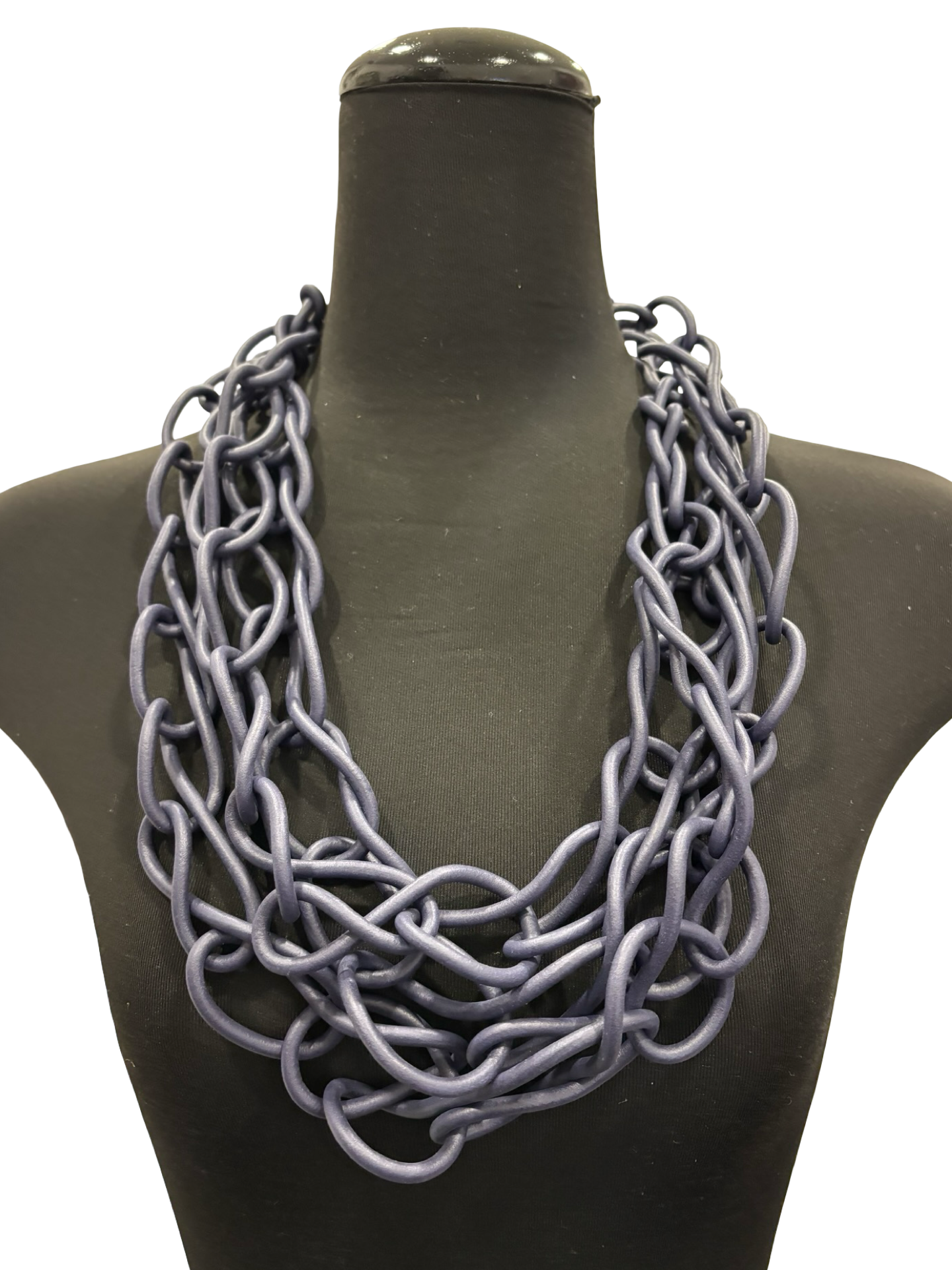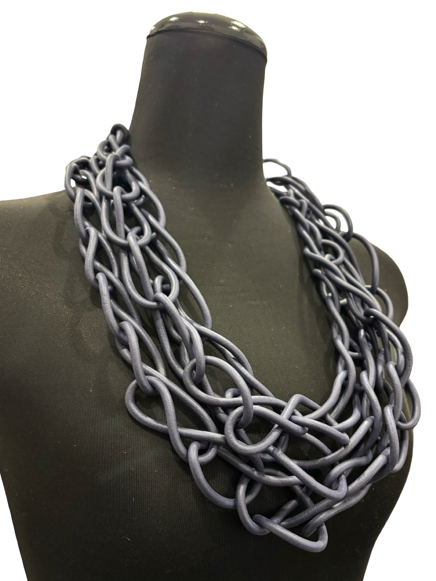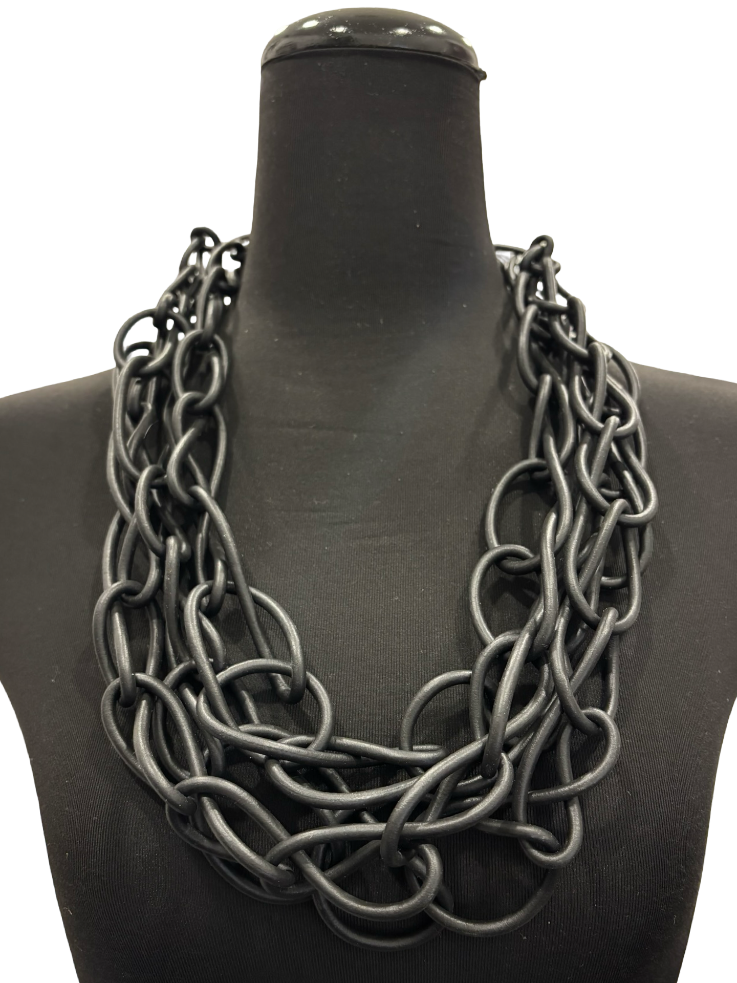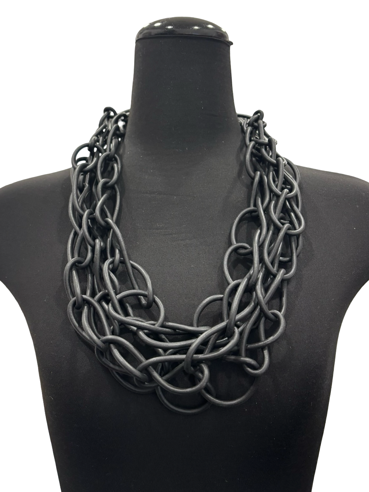 Stylish rubber necklace with many loops joining together, making it interesting with texture.