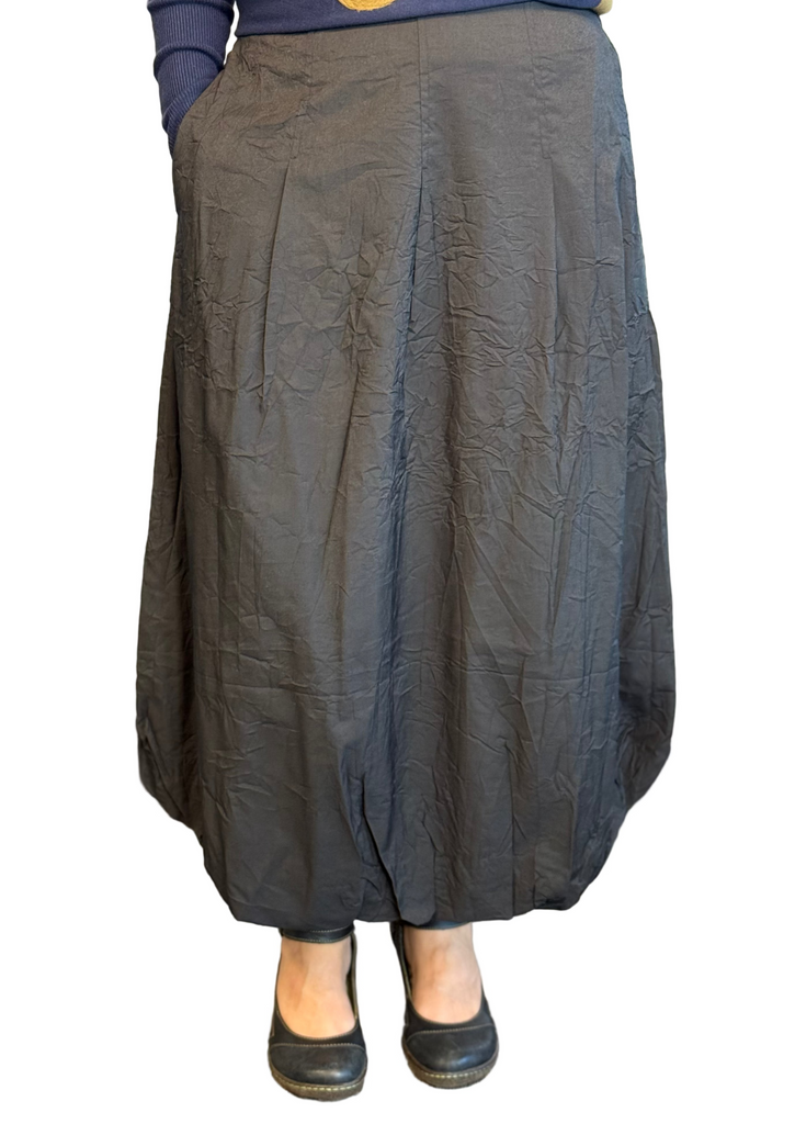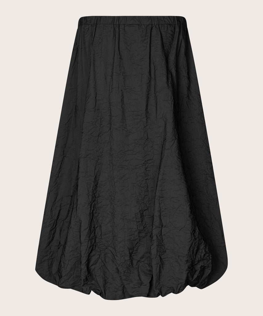 Timeless elegance and uncompromising comfort come together in this skirt with a slightly crinkled look. It features soft viscose fabric, an elasticated waist at the back, slit pockets at the sides, and feminine pleats at the front. Notice the elasticated hem, creating a light balloon effect and adding a modern twist to the casual fit. Style with knitwear for an effortless, stylish look.
