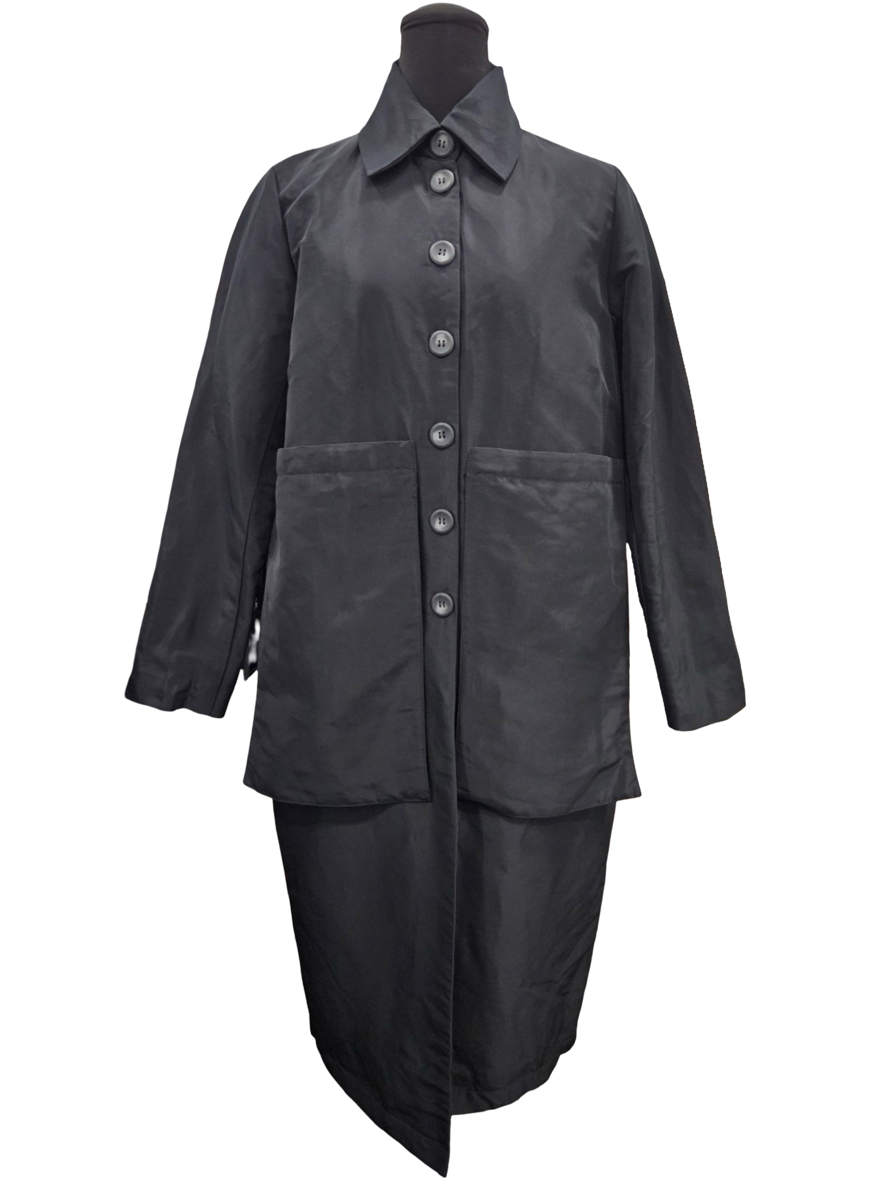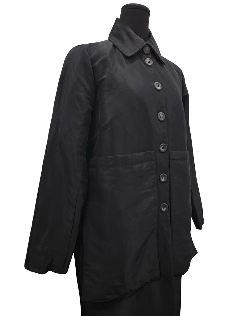 Beautiful medium weight coat, with a quilted interior and button closures. Not too flashy but just elegant enough.