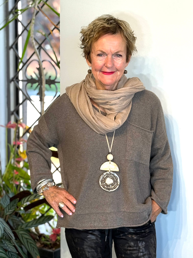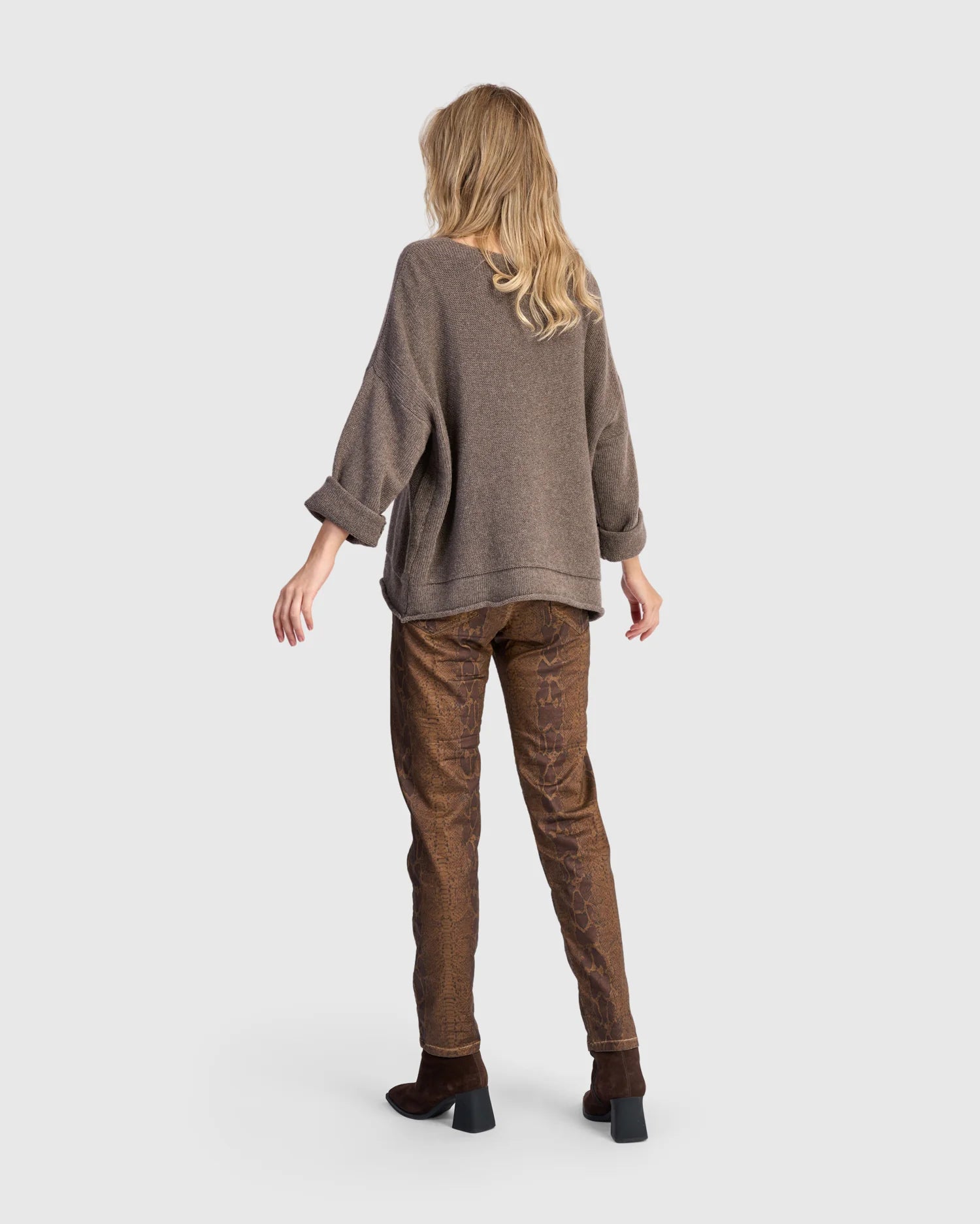 - Midweight sweater knit; due to the nature of this fabric we recommend a light layer for those with sensitive skin