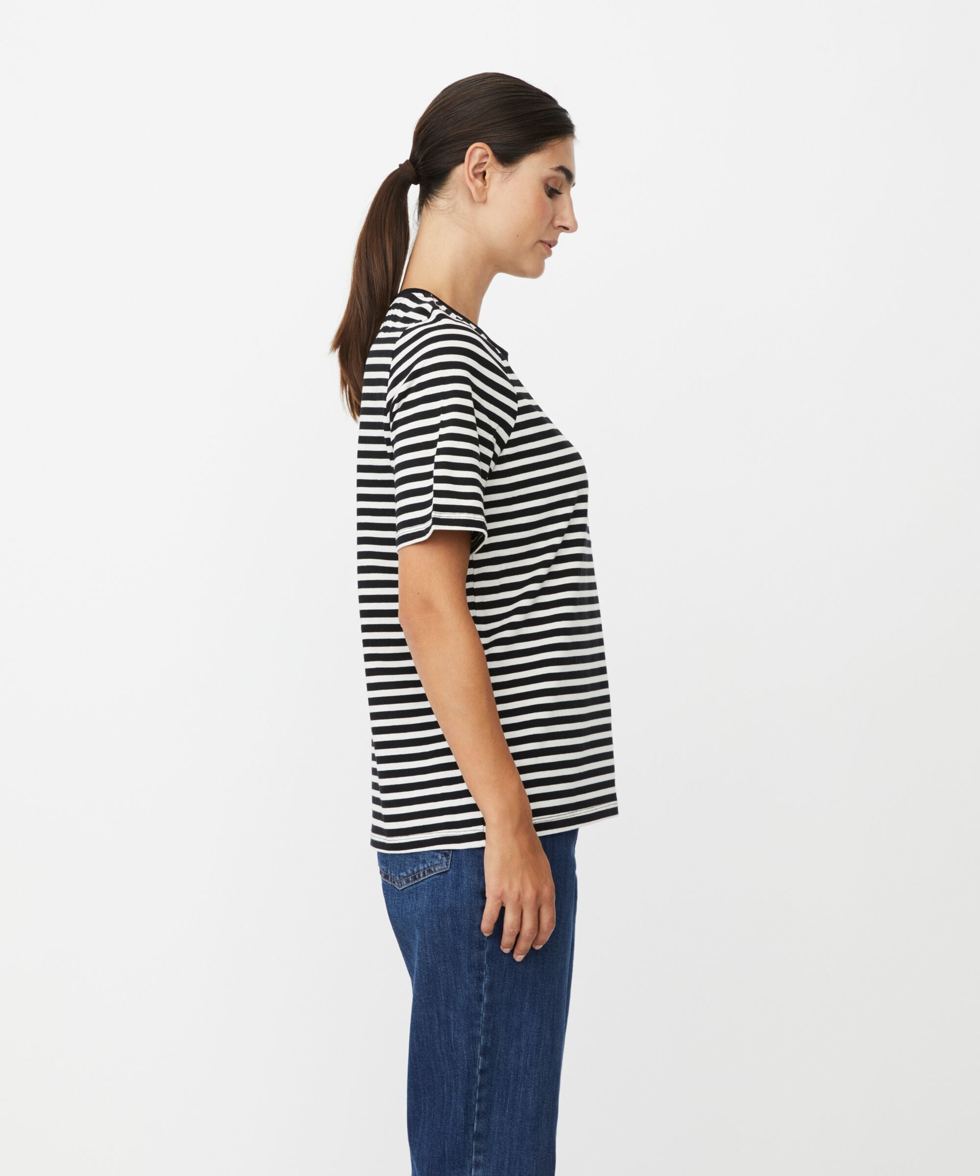 A good basic T-shirt is essential in the wardrobe - and this one is an excellent choice. It's made from soft cotton and designed with a classic, straight cut and delicate details such as dropped shoulder seams and short sleeves of perfect length. Pair it with jeans, a skirt or under a blazer for a relaxed, stylish look that works season after season.