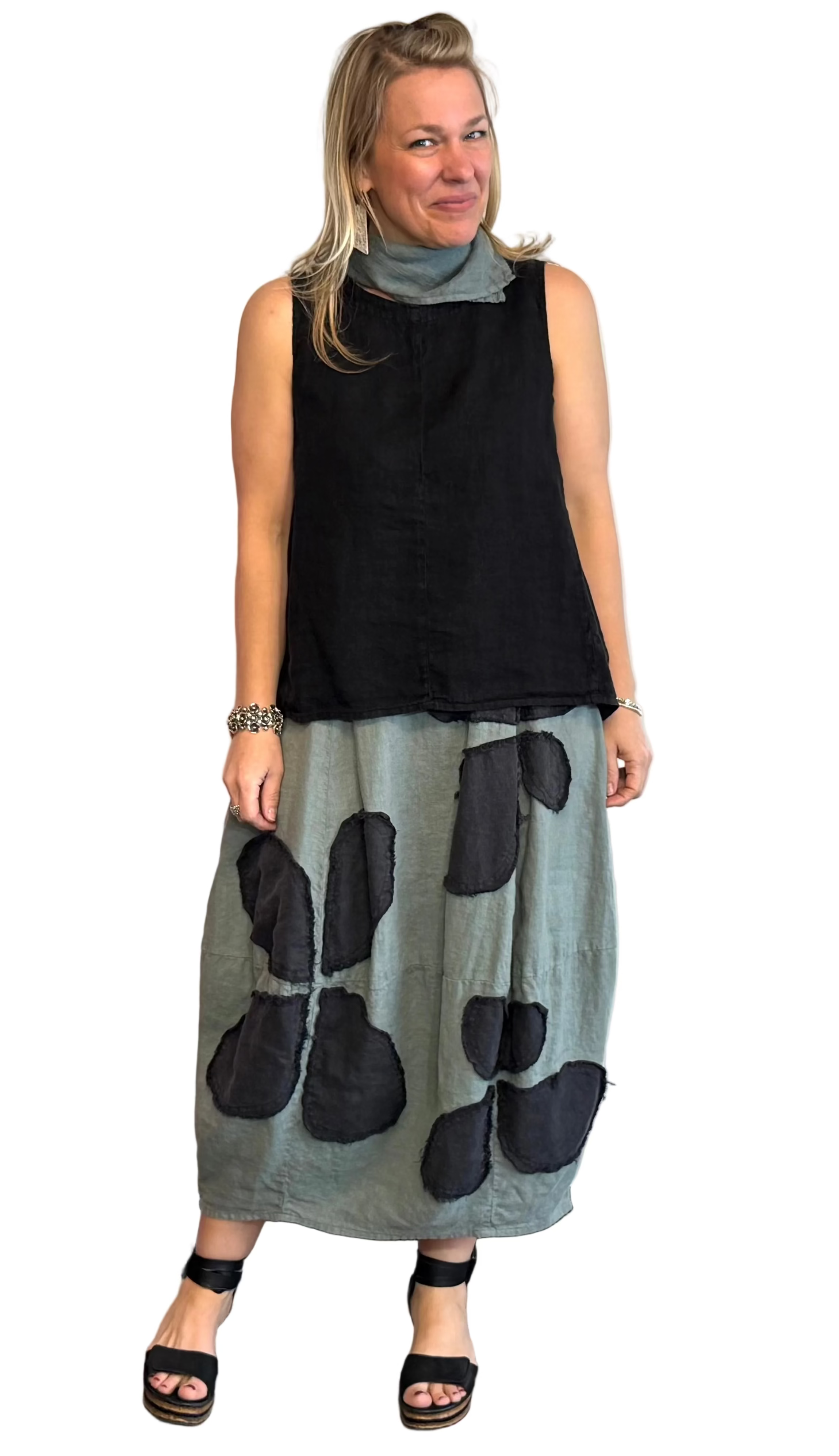 *Grizas A-Line Linen Tank In Black