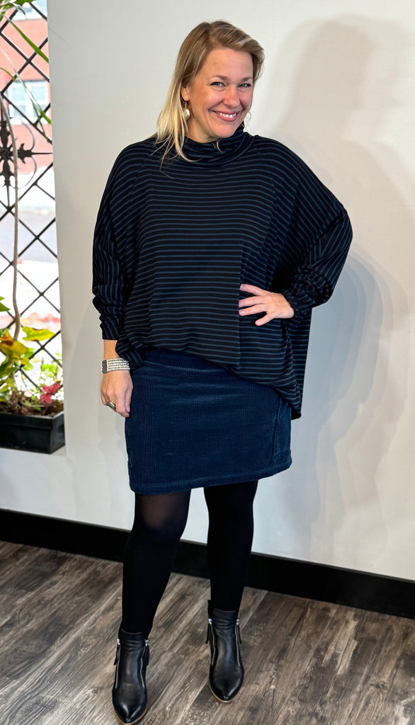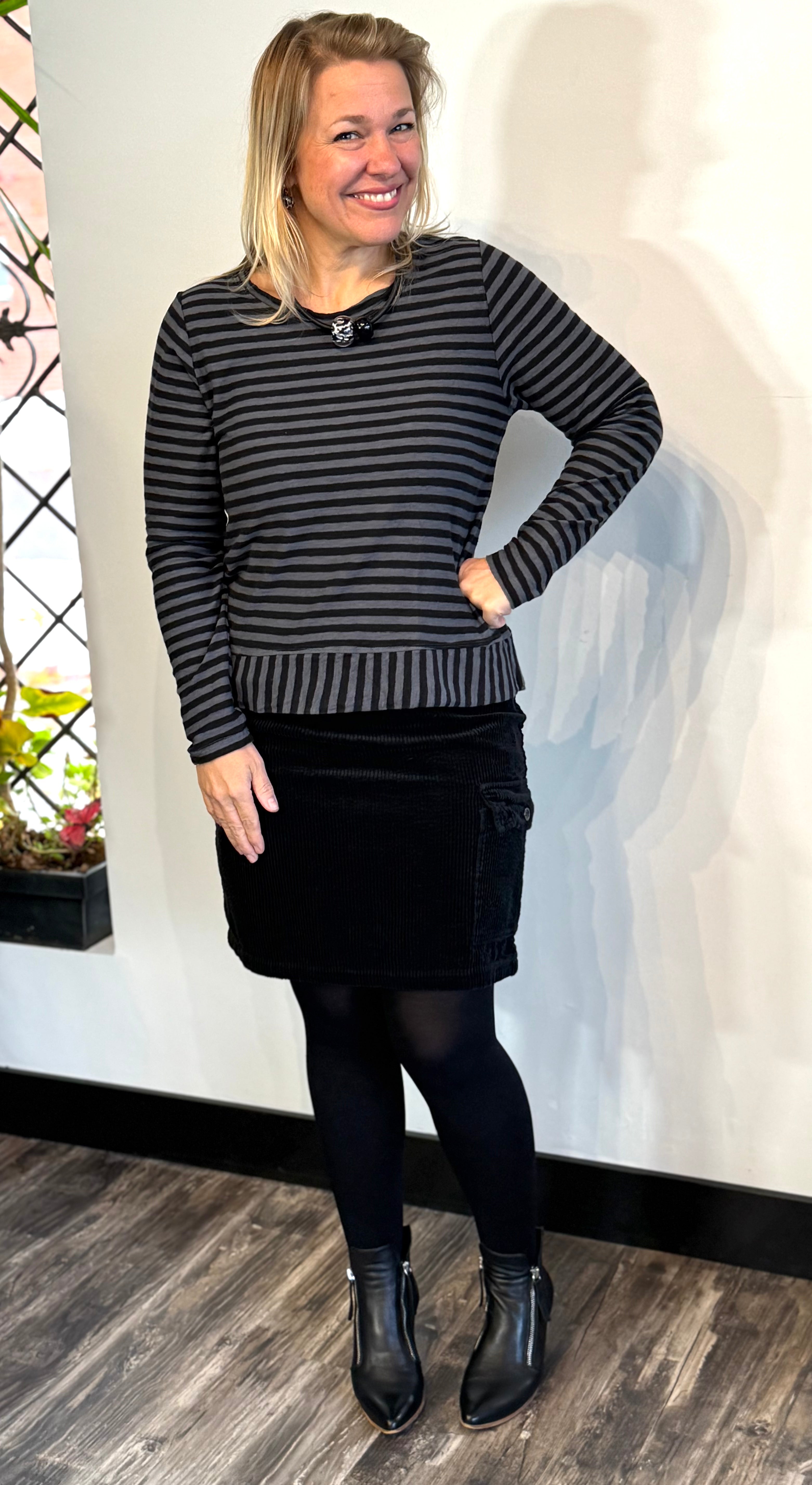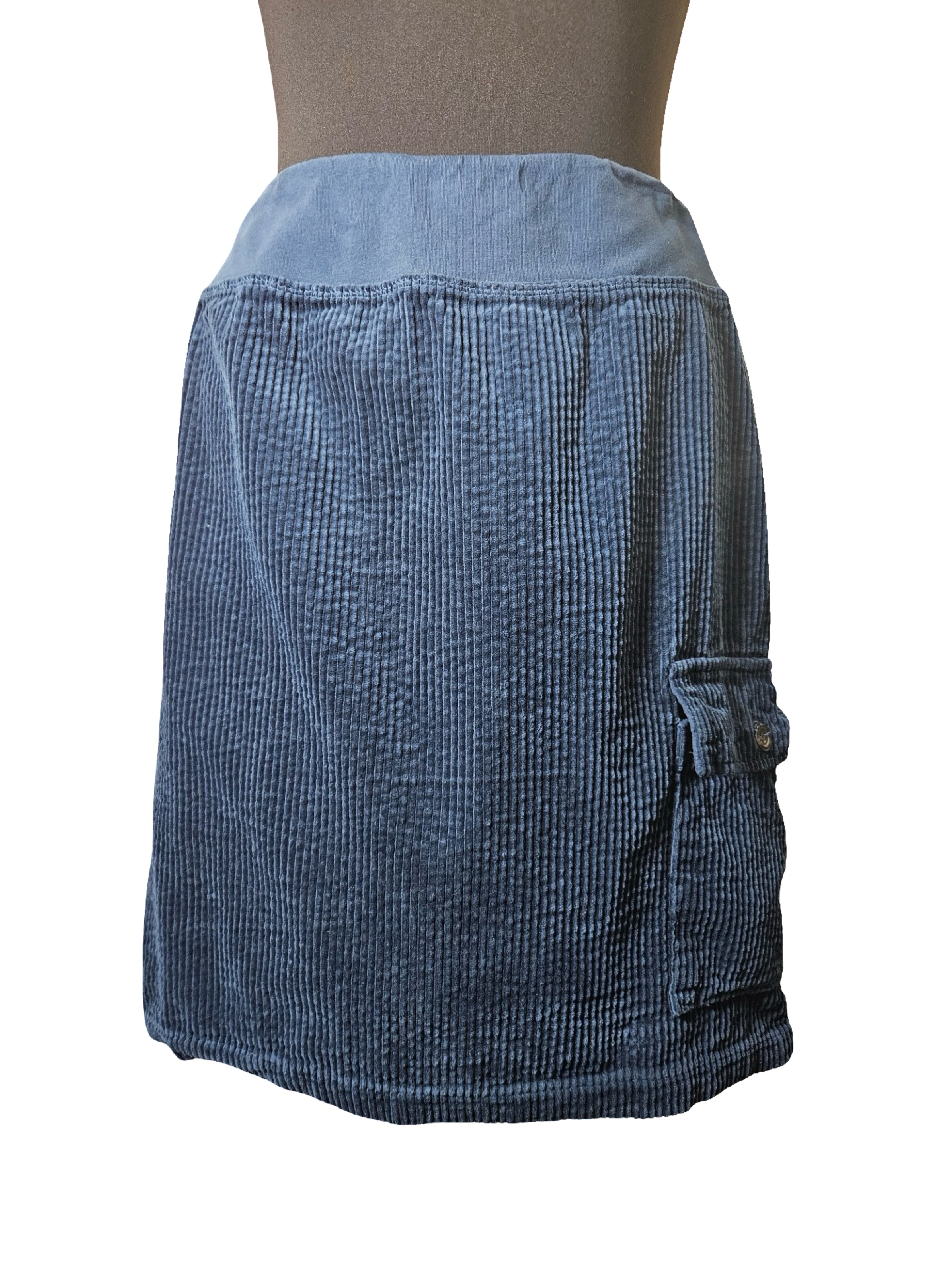 Beautifully simple corduroy skirt, featuring a jersey knit waistband and a style pocket on the side.