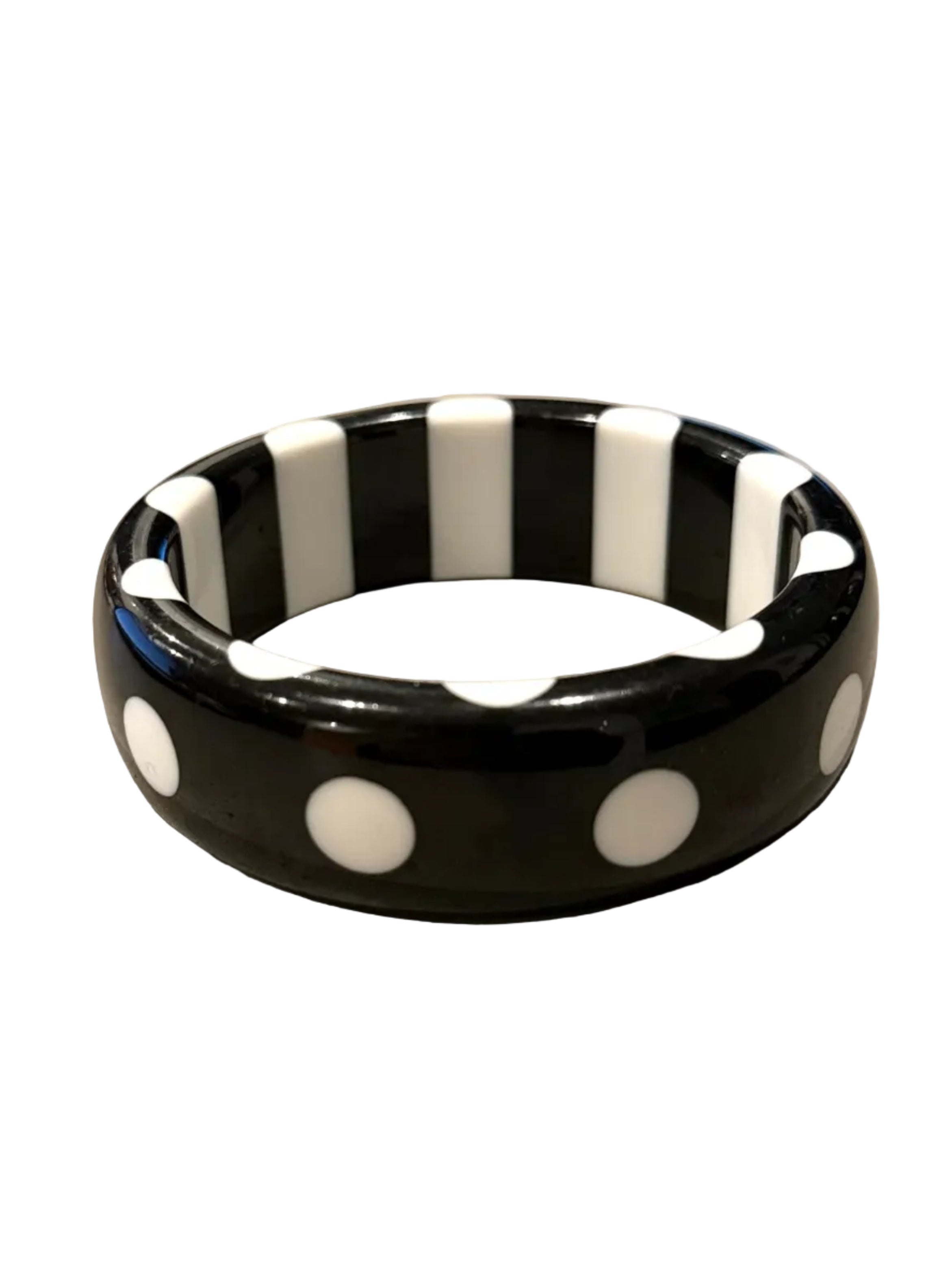 Thick resin bracelets. L&B Loves their dots and theres no better combo then classic black & white dots!