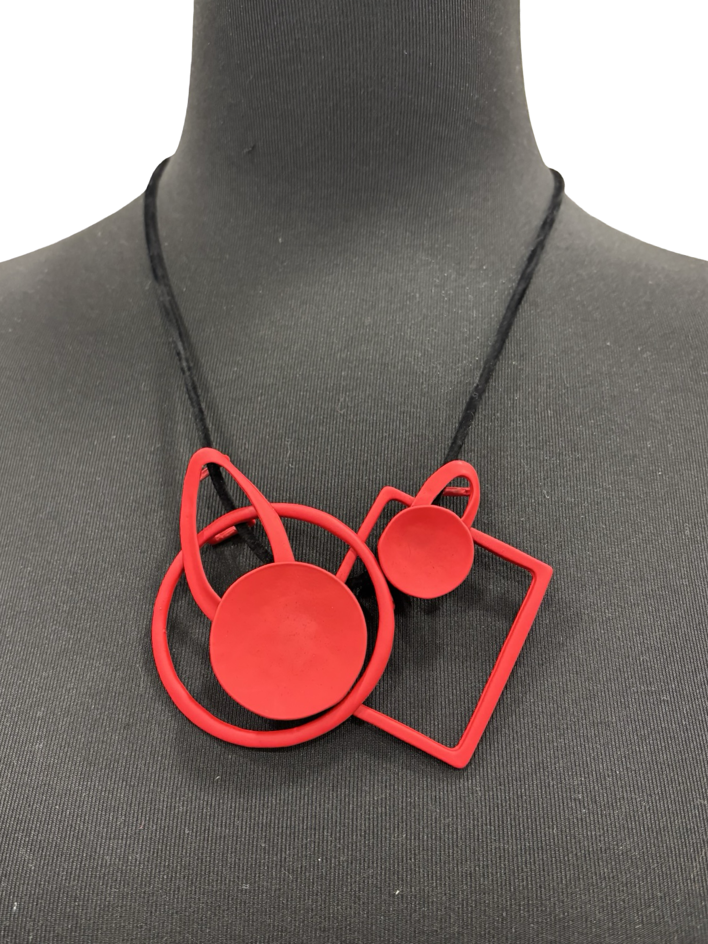 Stylish felt cord necklace with geometric metal design